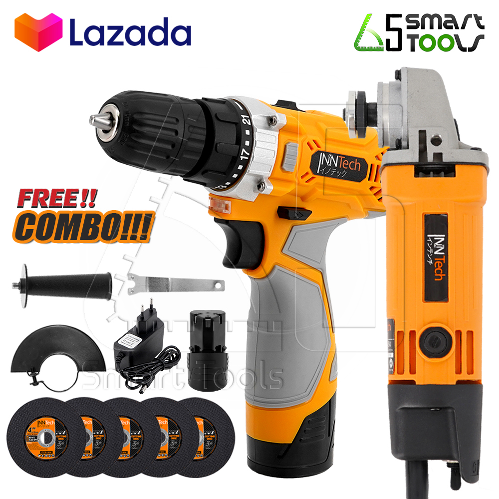 (แพ็คคู่) InnTech เครื่องเจียร หินเจียร ลูกหมู 4 นิ้ว 1,050W + สว่านไฟฟ้า สว่าน 3 หุน 720W รุ่น IT-954 + IT-606 แถมฟรี!! ดอกสว่าน ดอกเจียร ใบตัดเหล็ก ใบเจียร ใบตัดไม้ ใบตัดปูน แป้นขัดสี ขนแกะ และ อุปกรณ์ เครื่องมือช่าง รวม 26 ชิ้น INNT-954-606