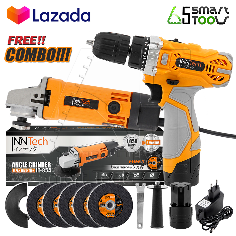 (แพ็คคู่) InnTech เครื่องเจียร หินเจียร ลูกหมู 4 นิ้ว 1,050W + สว่านไฟฟ้า สว่าน 3 หุน 720W รุ่น IT-954 + IT-606 แถมฟรี!! ดอกสว่าน ดอกเจียร ใบตัดเหล็ก ใบเจียร ใบตัดไม้ ใบตัดปูน แป้นขัดสี ขนแกะ และ อุปกรณ์ เครื่องมือช่าง รวม 26 ชิ้น INNT-954-606