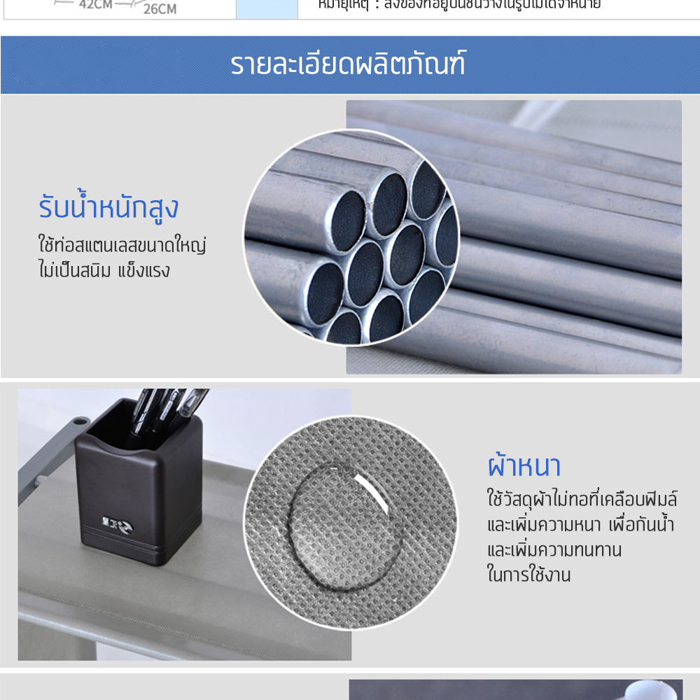 - ขนาด สูงxกว้างxยาว 42x26x124cm