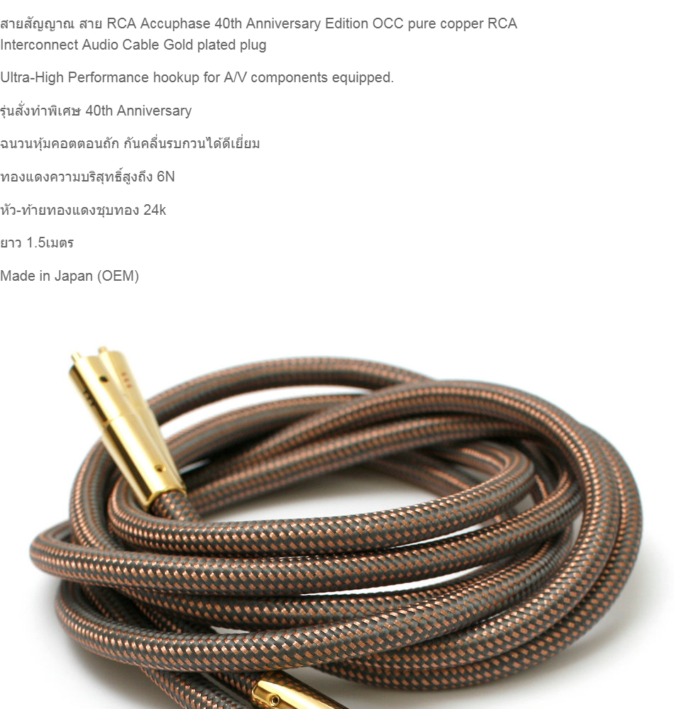 สายสัญญาณ สาย RCA Accuphase 40th Anniversary Edition OCC pure copper RCA Interconnect Audio Cable Gold plated plug