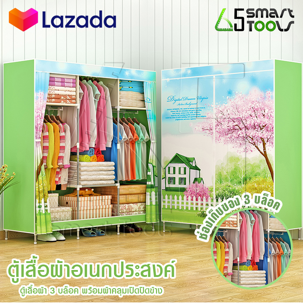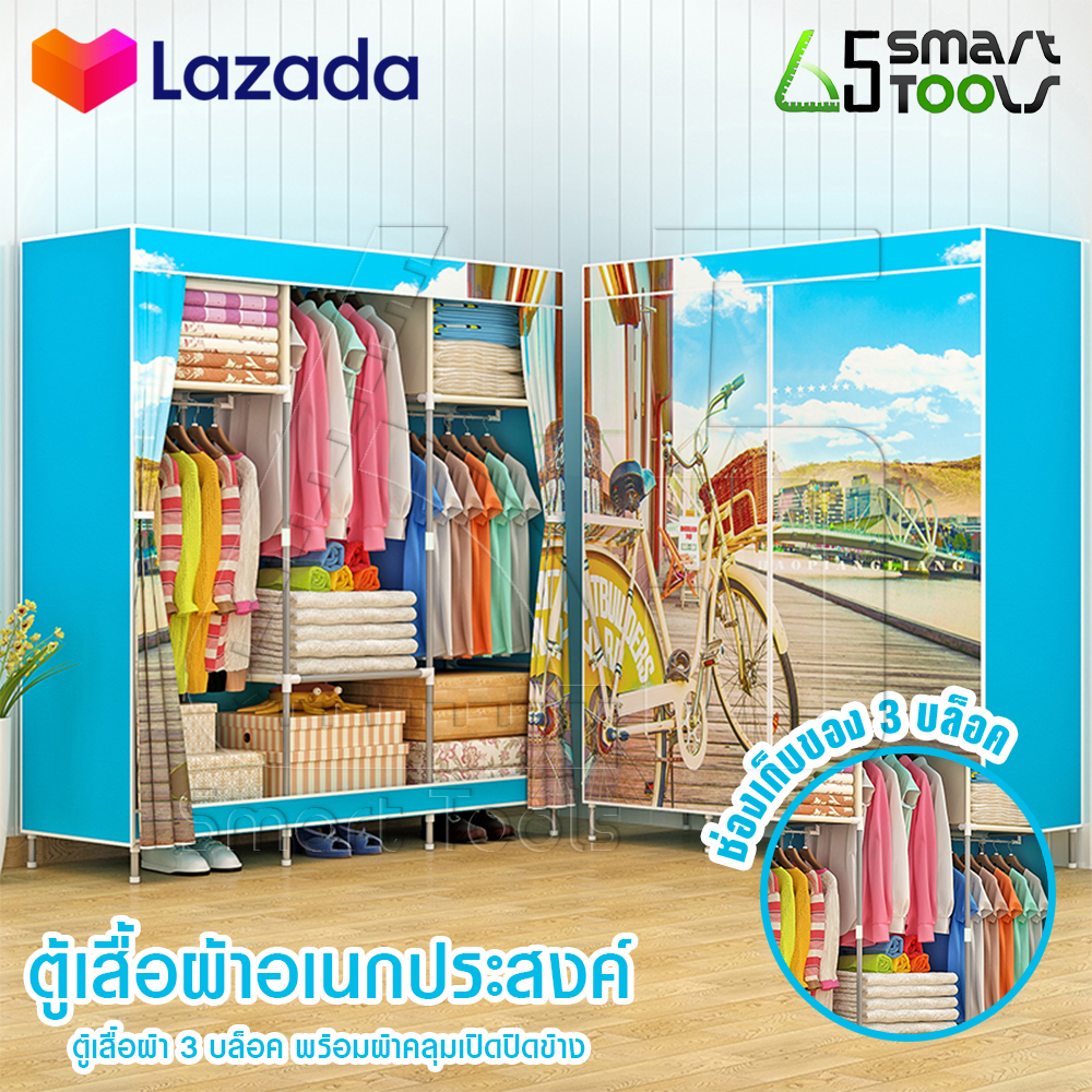 - ตู้เสื้อผ้าอเนกประสงค์ 3บล็อค พร้อมช่องเก็บของพิเศษ 3ช่อง
