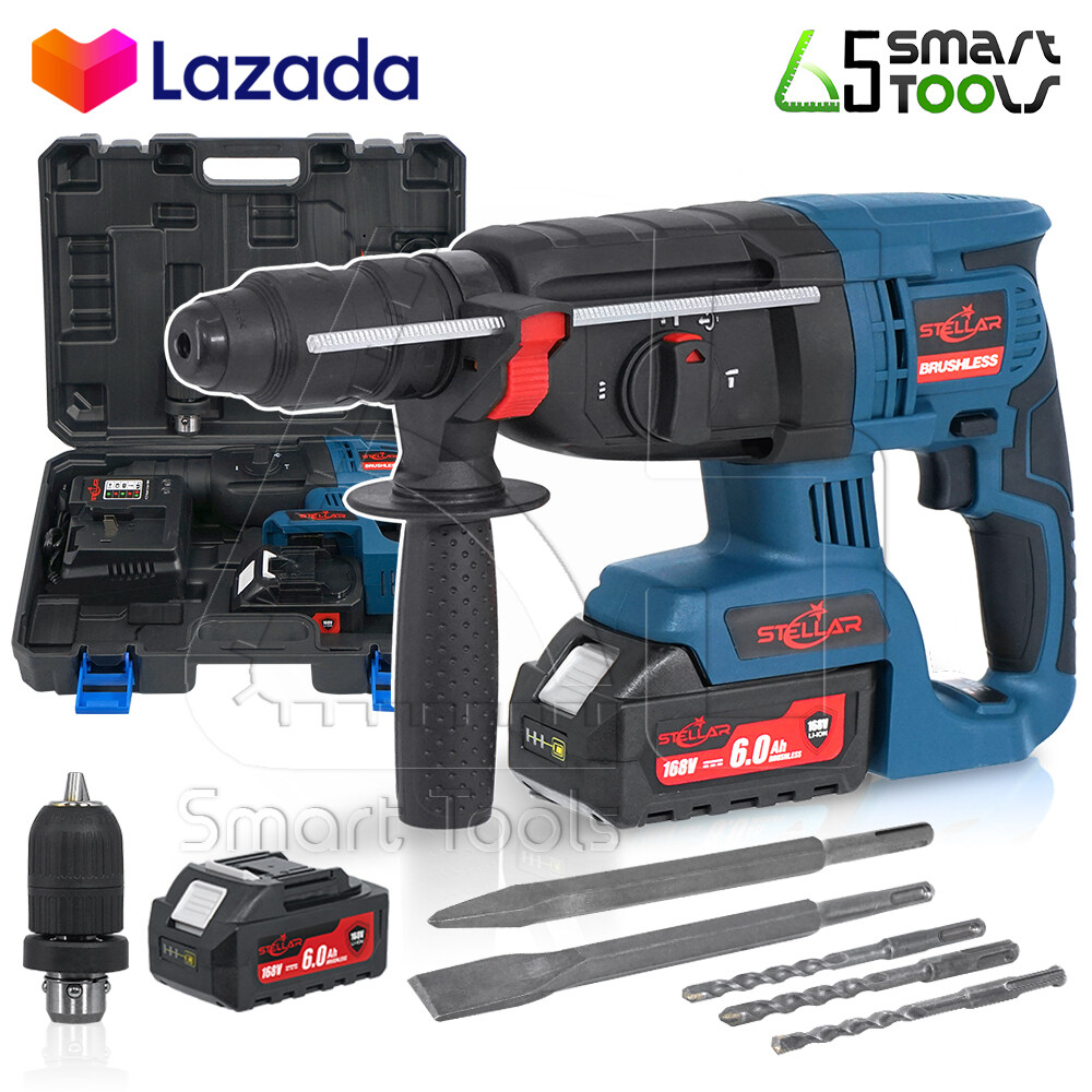 [ลดล้างสต๊อก] STELLAR สว่านโรตารี่ สว่านแบต ไร้สาย 3 ระบบ 26 มม. Brushless Motor แบตเตอรี่ ลิเธียมไอออน ขนาดใหญ่ Li-ion 168V (เปลี่ยนหัวสว่านได้) พร้อมดอกสว่าน 5 ดอก รุ่นงานหนัก ทนทานต่อการใช้งาน ST-MP-168VL