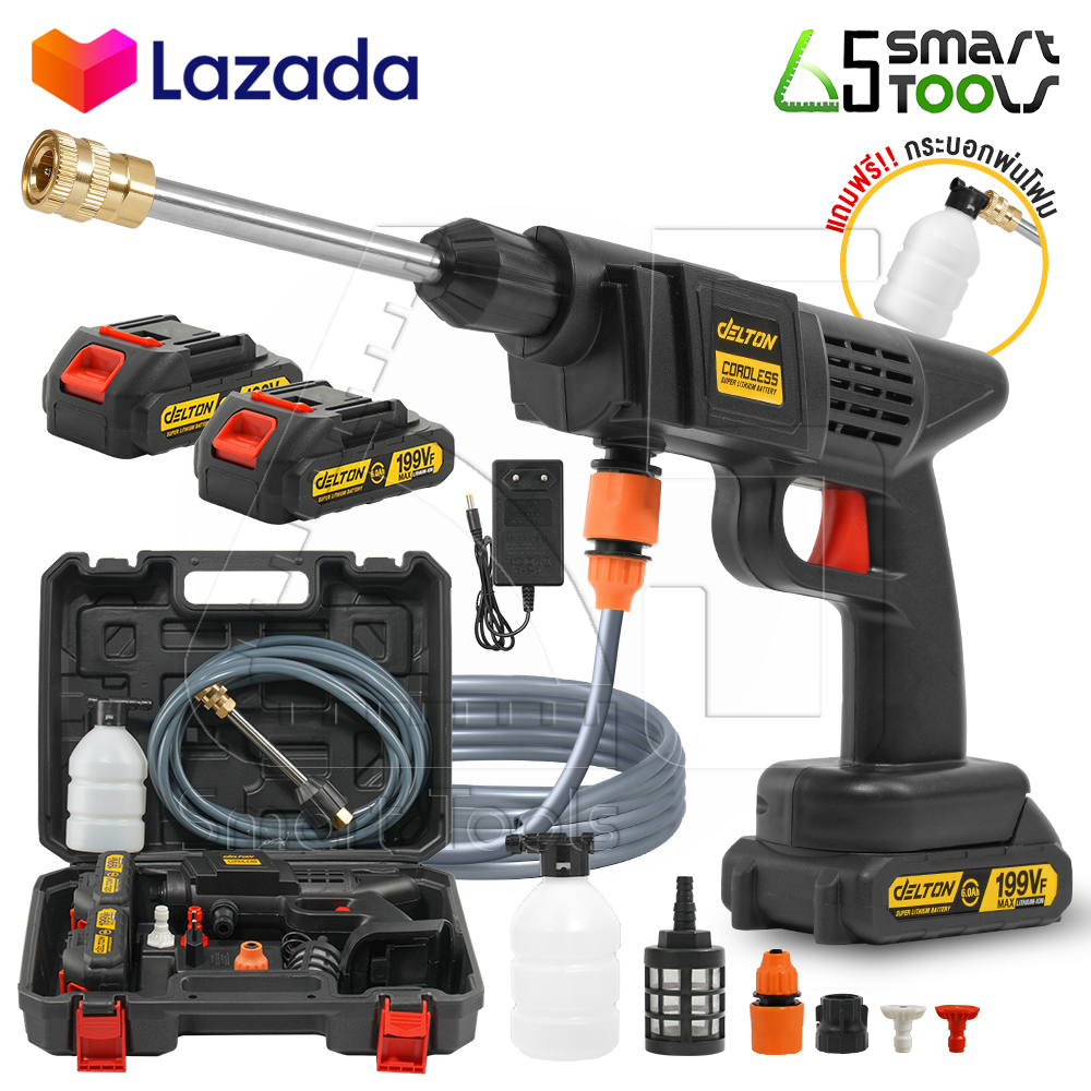 - DELTON เครื่องฉีดน้ำไร้สาย ปืนฉีดน้ำแรงดันสูง 199V