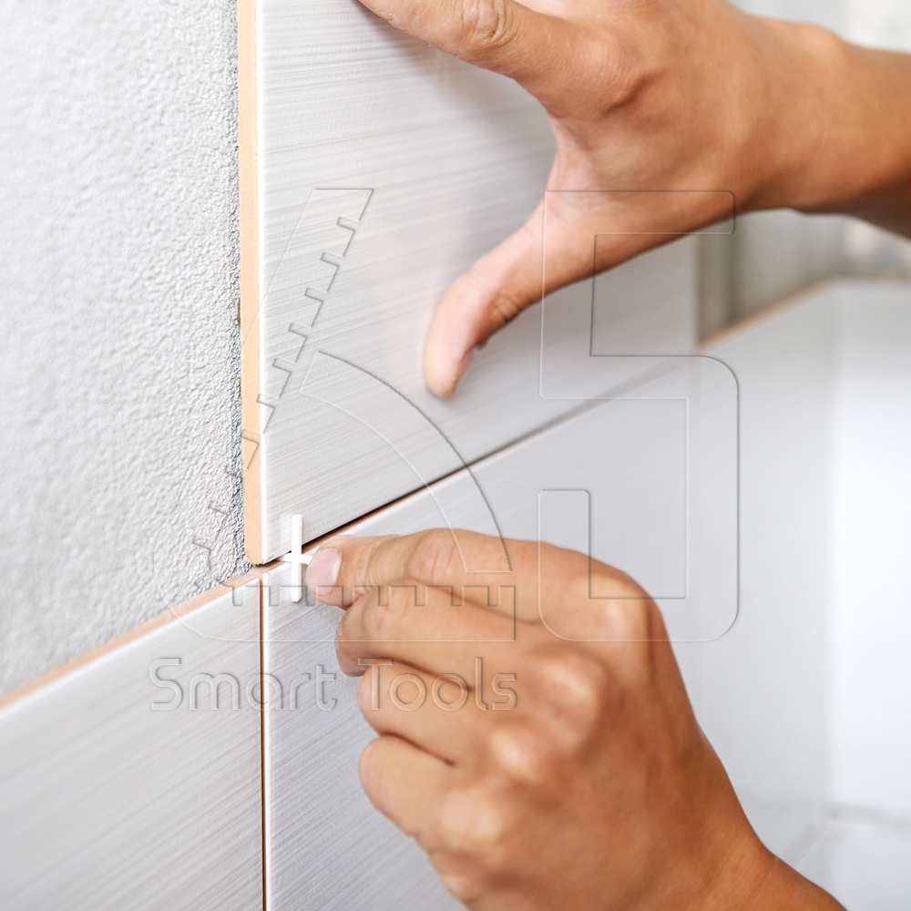 - ในระหว่างการปูกระเบื้องให้ติดตั้งอุปกรณ์จัดแนวกระเบื้องทุกครั้งวางไว้ที่มุมของกระเบื้องทั้ง 4 มุม