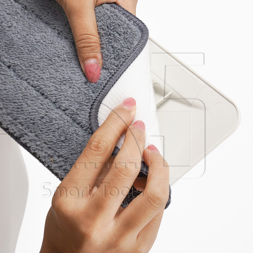 - ผ้าถูพื้นเป็นผ้าไมโครไฟเบอร์ จับฝุ่นขนาดเล็ก และดูดซับน้ำได้ดี