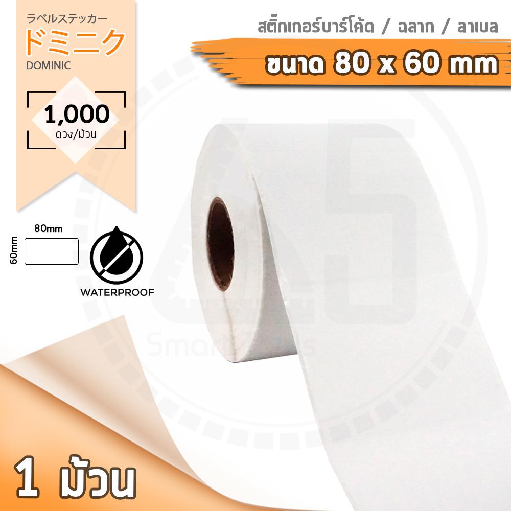 สติ๊กเกอร์เนื้อกึ่งมันกึ่งด้าน มุมมน สีขาวใช้งานได้หลายรูปแบบ ทั้งลาเบลบาร์โค้ดติดกล่อง, ป้ายสินค้าติดกล่อง, สติ๊กเกอร์บาร์โค้ด, สติ๊กเกอร์ทั่วไปใช้ได้กับเครื่องพิมพ์ Ribbon / ริบบอนขนาด 80mm x 60mmจำนวน 1,000 ดวง/ม้วนขนาดแกน 40mm