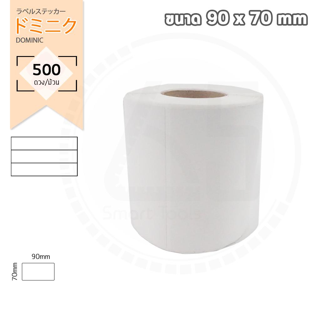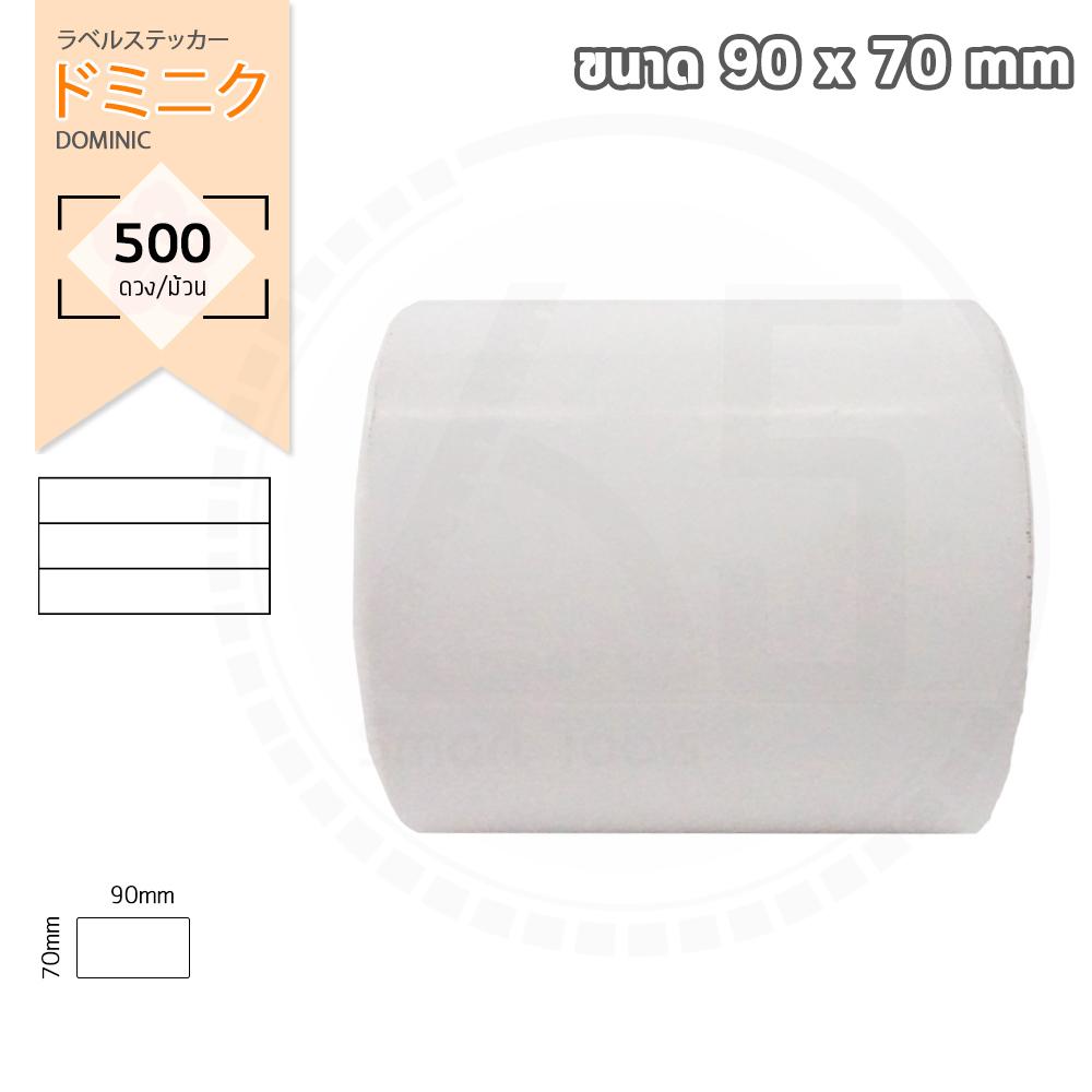 สติ๊กเกอร์เนื้อกึ่งมันกึ่งด้าน มุมมน สีขาว ใช้งานได้หลายรูปแบบ ทั้งลาเบลบาร์โค้ดติดกล่อง, ป้ายสินค้าติดกล่อง, สติ๊กเกอร์บาร์โค้ด, สติ๊กเกอร์ทั่วไป ใช้ได้กับเครื่องพิมพ์ Ribbon / ริบบอน ขนาด 90mm x 70mm จำนวน 500 ดวง/ม้วน ขนาดแกน 40mm