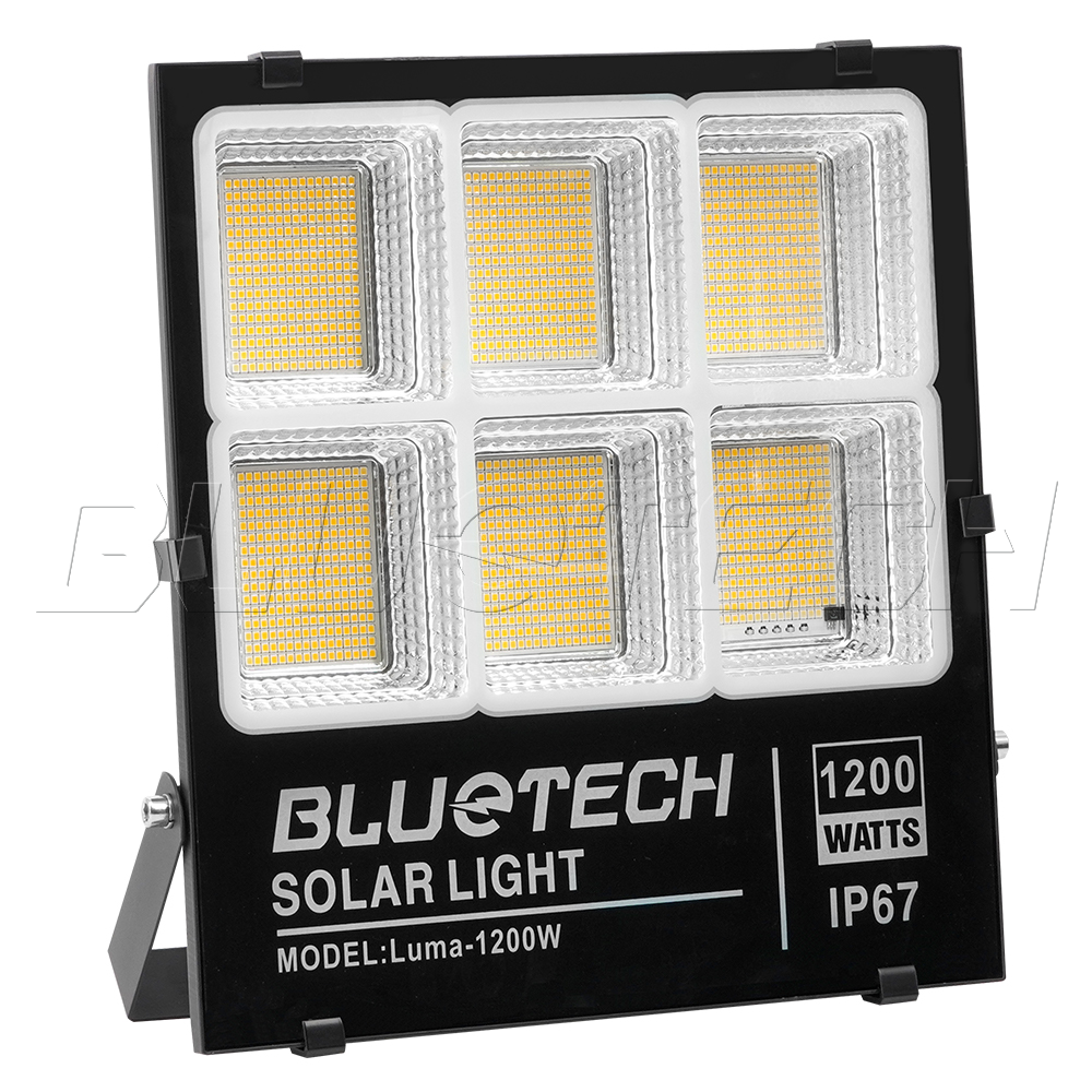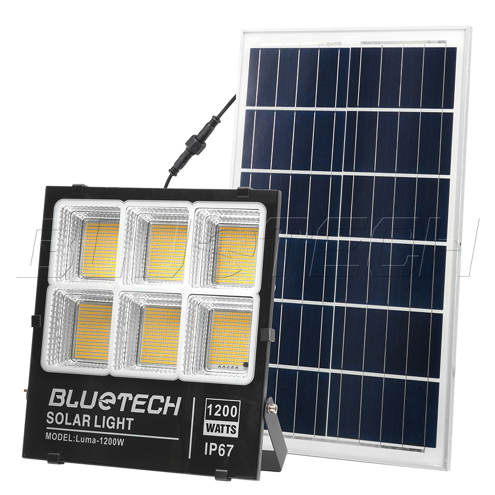 Bluetech USA ไฟโซล่าเซลล์ ขนาด 1,200วัตต์ สีขาว (White) / วอร์มไวท์ (Warm White) ไฟสปอร์ตไลท์ Solar Cell LED Floodlight Spotlight รุ่นใหม่ กันน้ำ IP67 วัตต์เต็ม รับประกัน 1ปี