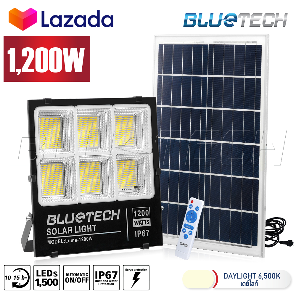 Bluetech USA ไฟโซล่าเซลล์ ขนาด 1,200วัตต์ สีขาว (White) / วอร์มไวท์ (Warm White) ไฟสปอร์ตไลท์ Solar Cell LED Floodlight Spotlight รุ่นใหม่ กันน้ำ IP67 วัตต์เต็ม รับประกัน 1ปี