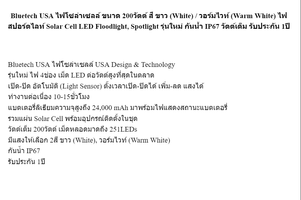 - วัตต์เต็ม 200วัตต์ เม็ดหลอดมาดถึง 251LEDs