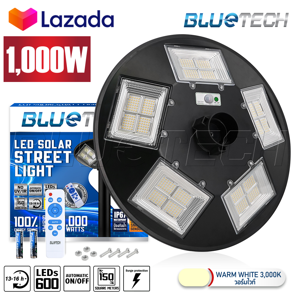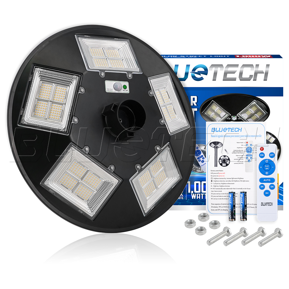 Bluetech USA ไฟ UFO ไฟถนนไฟโซล่าเซลล์ Solar Street Light UFO ขนาด 1,000 วัตต์ สีวอร์มไวท์ (Warm White) ไฟถนนโซล่าเซลล์ SolarCell LED Spotlight 5 ทิศทาง กันน้ำ IP67 รับประกัน 1 ปี