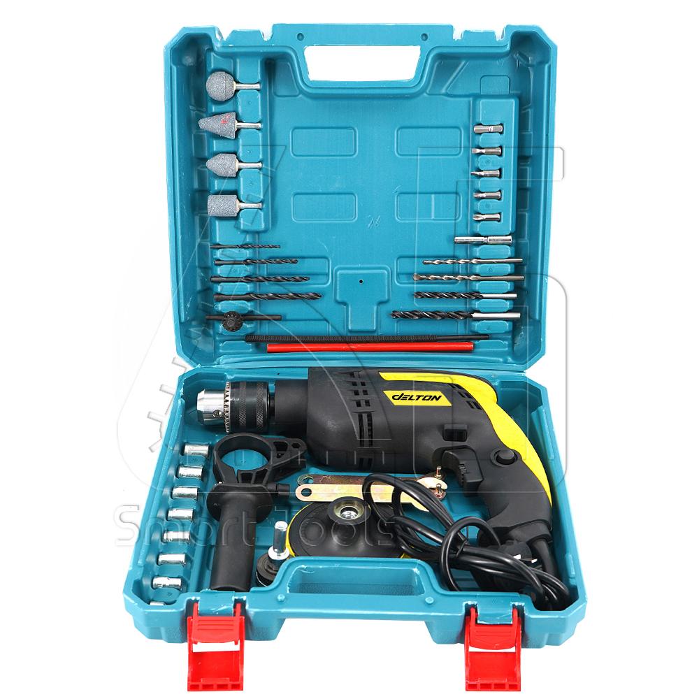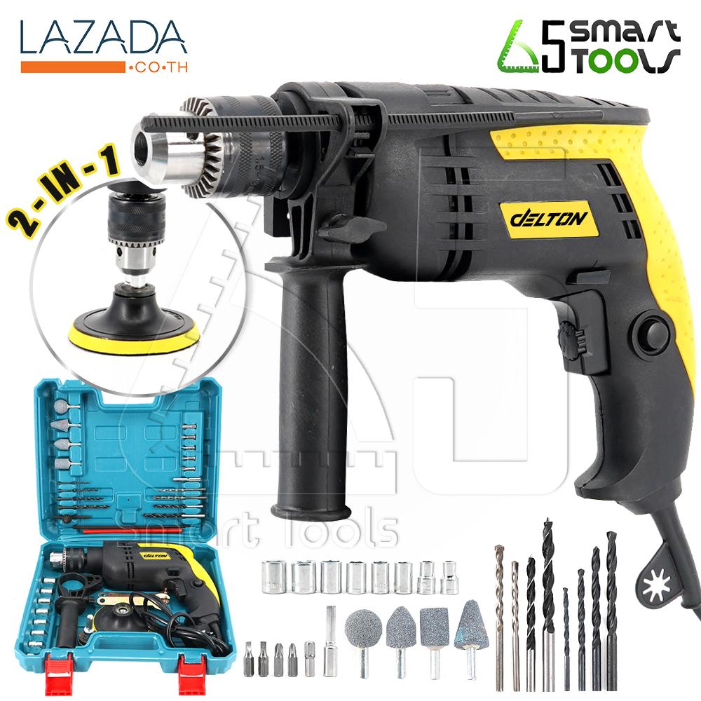 DELTON สว่านกระแทก 13 มม. 1,180W รุ่น 2 IN 1 แถมฟรี! แป้นขัดสีรถยนต์ (ใช้ต่อกับสว่าน) พร้อมกล่องอุปกรณ์ ดอกสว่าน ดอกไขควง ลูกบล็อก ประแจ ครบชุด