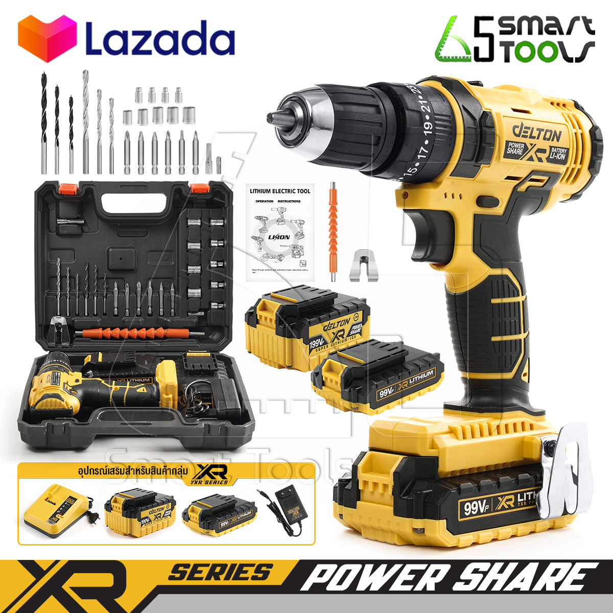 - สามารถใช้งานร่วมกับเครื่องมือช่าง DELTON แบตเตอรี่ และสายชาร์จพาวเวอร์แชร์ (Power Share) ในกลุ่ม YXR-Series ได้ทั้ง 99V และ 199V