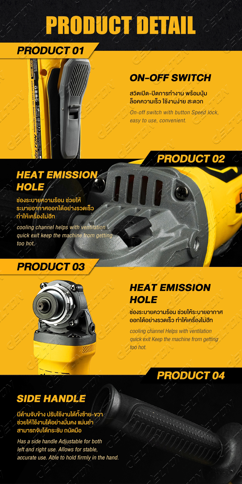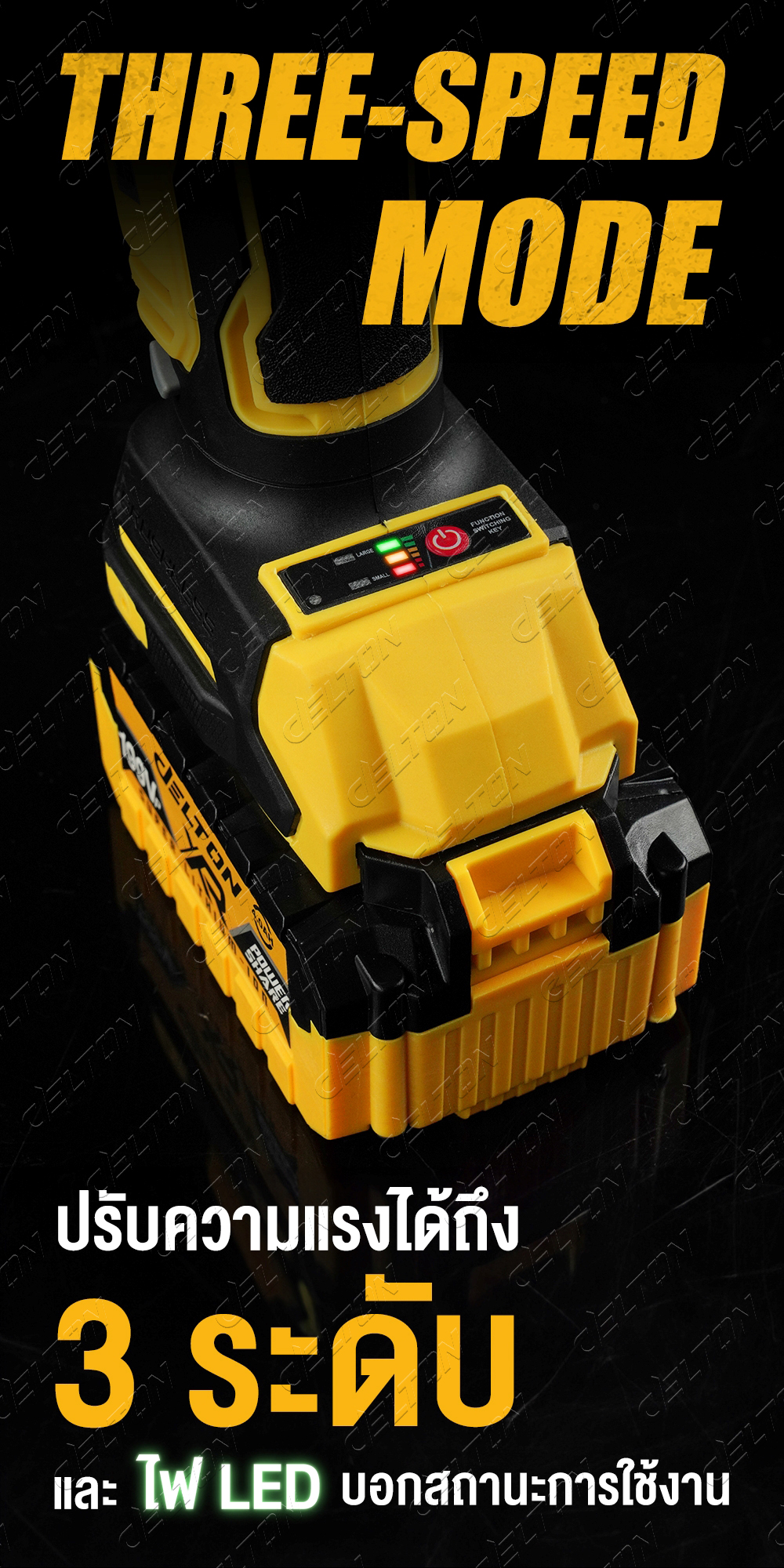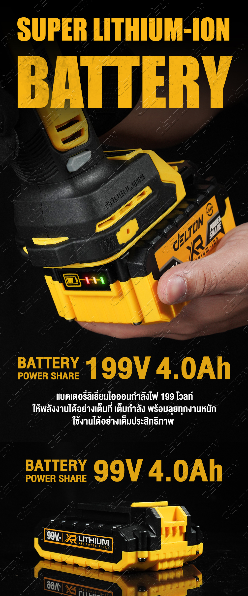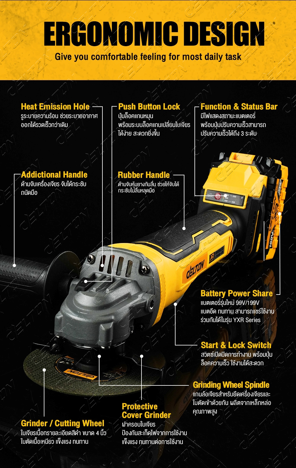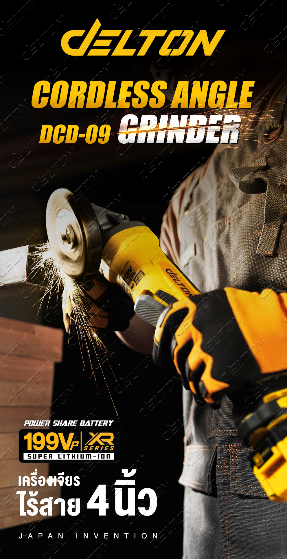- DELTON เครื่องเจียร์ไร้สาย 4 นิ้ว 199V YXR Series รุ่น DCD-09