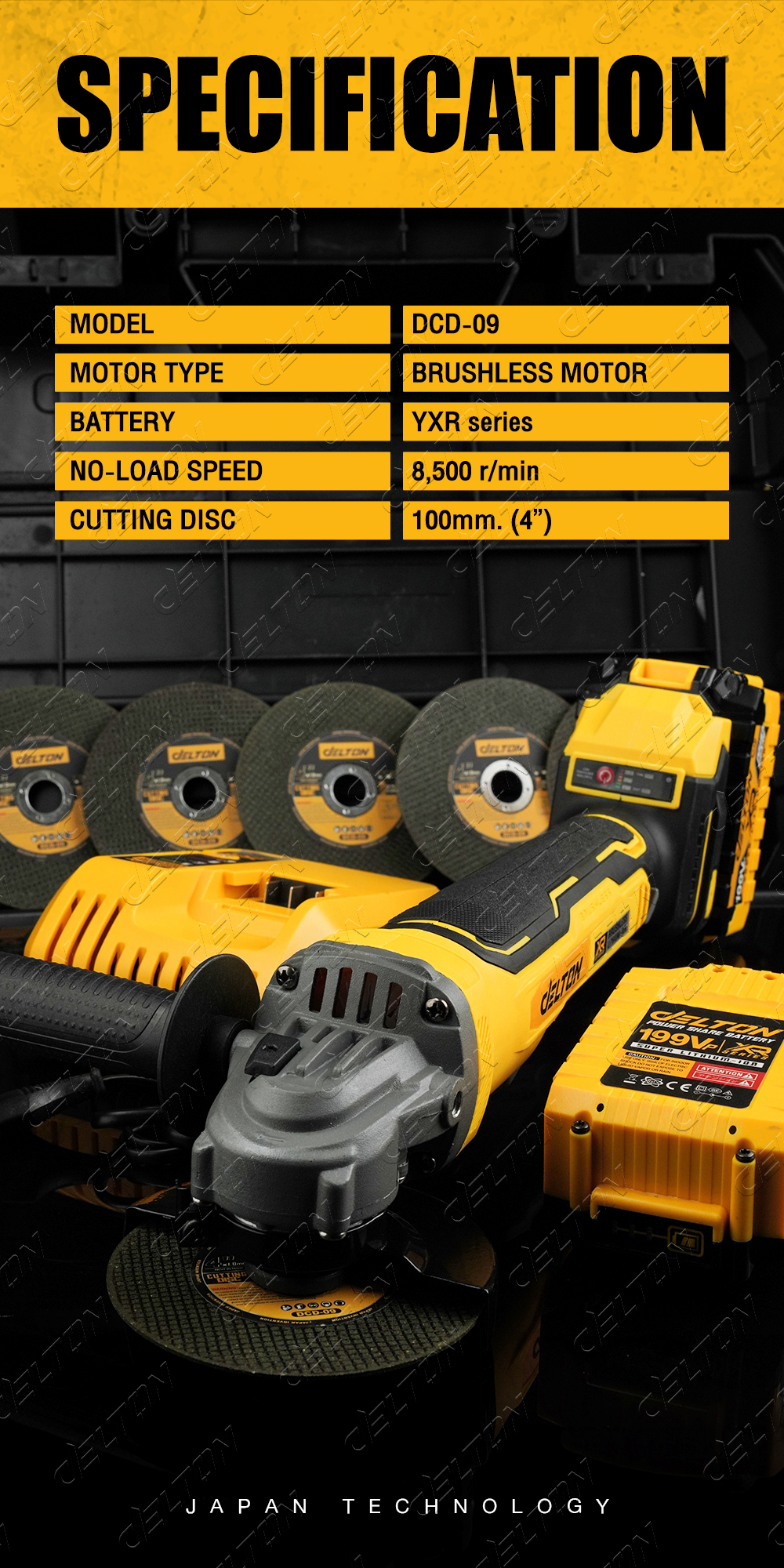 เครื่องเจียรแบตเตอรี่ 4 นิ้ว Brushless Motor YXR Series รุ่น DCD-09 ฟรี! ใบตัด 6 ใบ พร้อมอุปกรณ์เสริมครบชุด ใช้งานร่วมกับสินค้า Power Share กลุ่ม YXR-Series ได้
