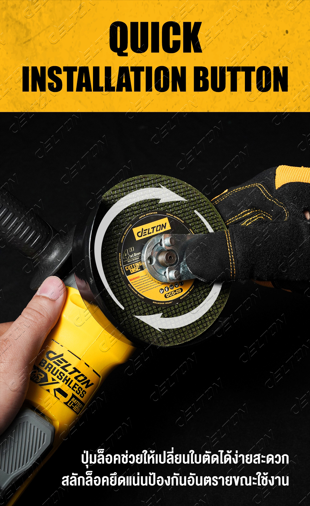 - แถมฟรี!! ใบตัดบาง DELTON 4 นิ้ว 6 ใบจุใจ, ด้ามจับเสริม (ต่อเข้าตัวเครื่องได้ทั้ง 2 ด้าน ซ้าย-ขวา), บังใบกันสะเก็ด, ประแจ และกล่องเครื่องมือกันกระแทกรุ่นใหม่ เรียบร้อย พกพาสะดวก