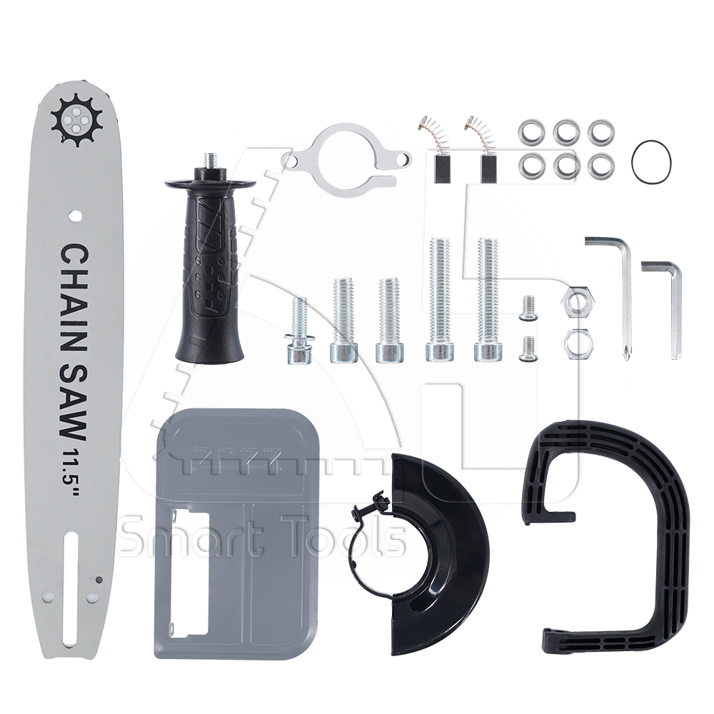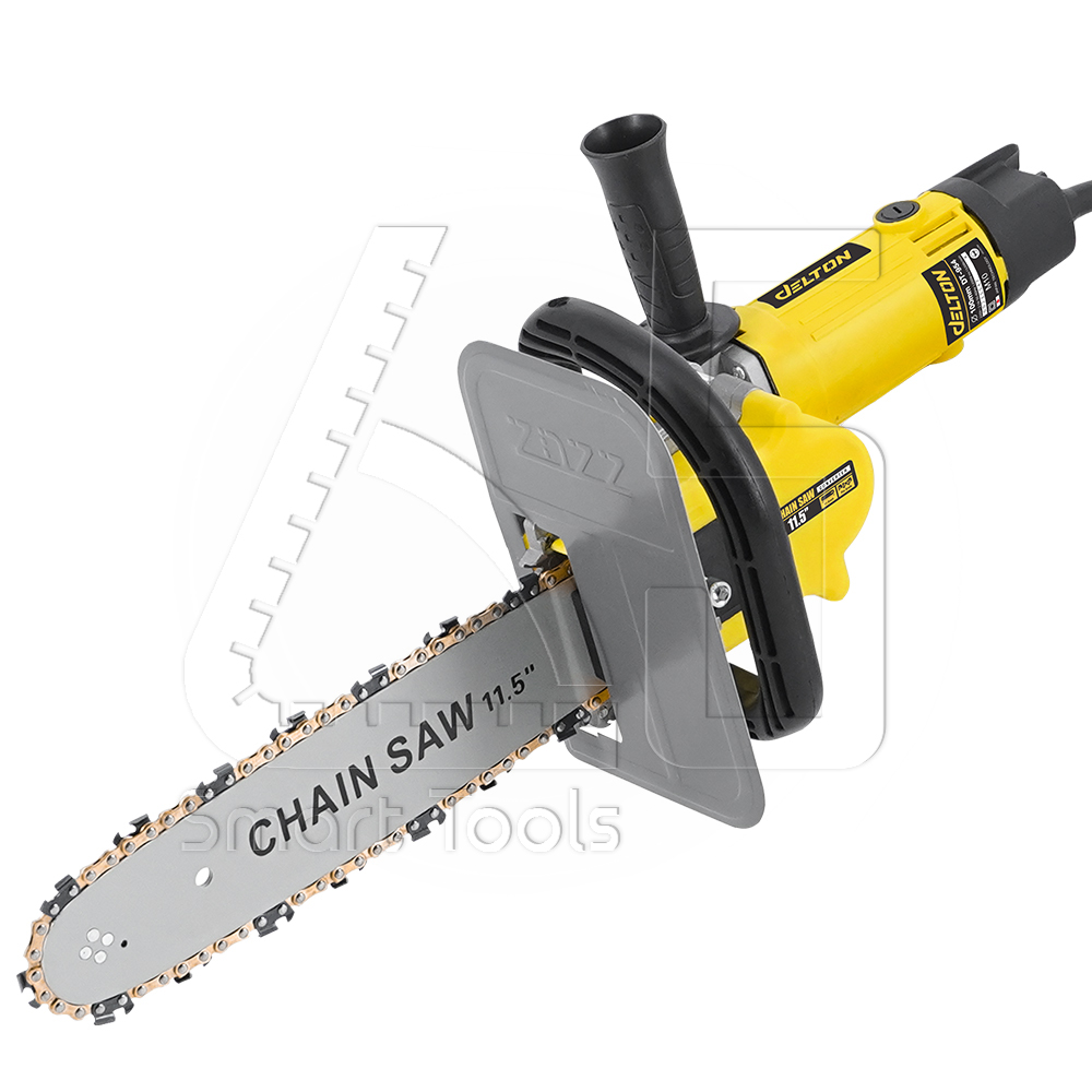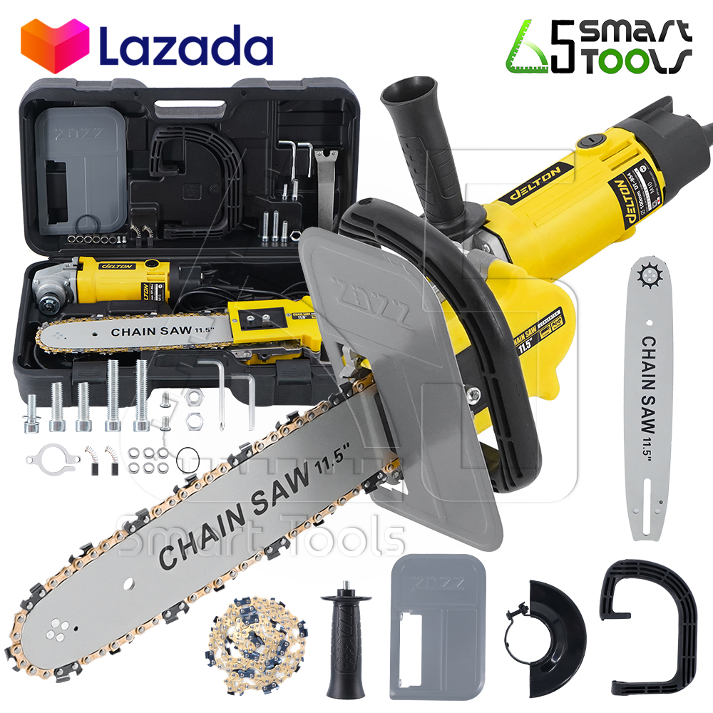 - DELTON ชุดเครื่องเจียร์ 4 นิ้ว พร้อมหัวบาร์โซ่สำหรับแปลงการใช้งานเป็นเลื่อยไฟฟ้า