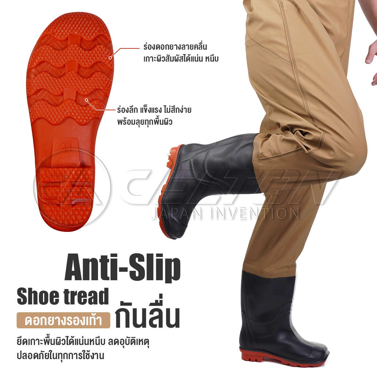 • รองเท้าบู๊ททนทาน กันลื่น พื้นรองเท้าออกแบบมาเพื่อการยึดเกาะดีเยี่ยม ปลอดภัยแม้พื้นลื่นหรือชื้นแฉะ