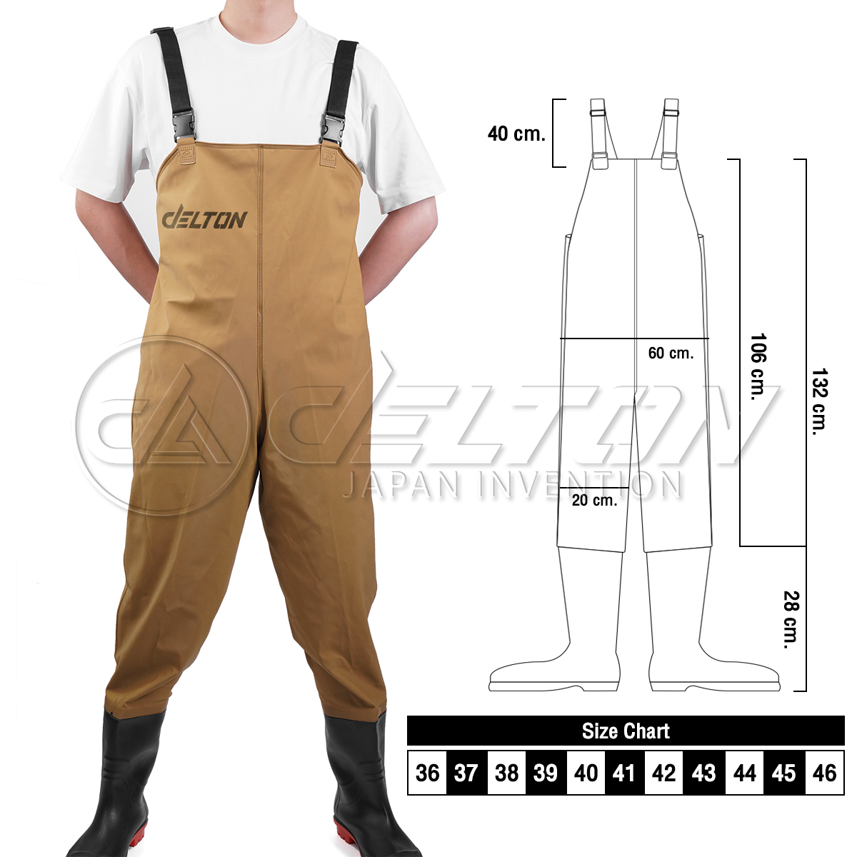 • ความยาวจากอกถึงพื้นรองเท้าบูท : 132 เซนติเมตร