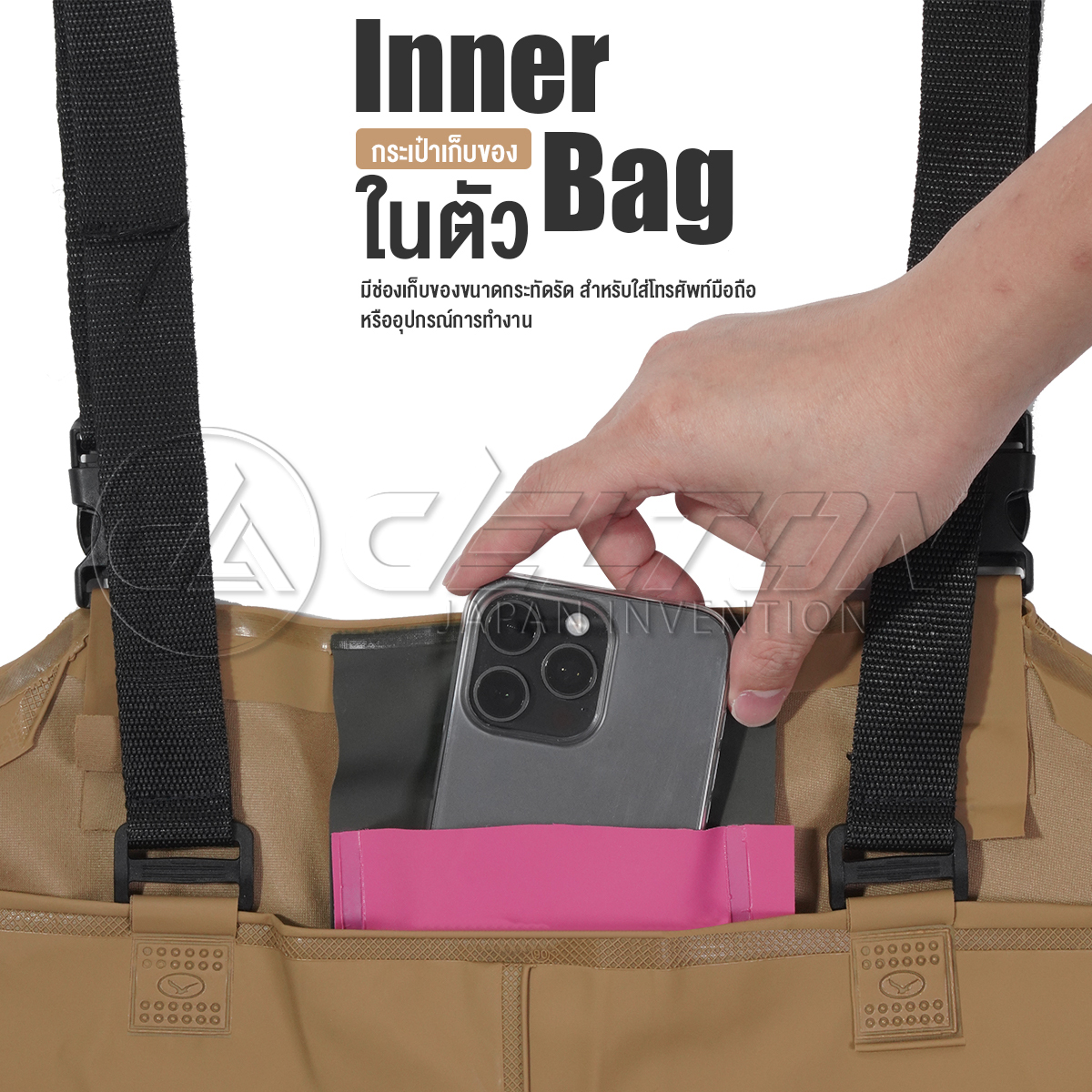 • สายเอี๊ยมปรับระดับได้ พร้อมตัวล็อกแข็งแรง ใส่สบาย ปรับได้ตามสรีระ ใช้งานได้ทั้งชายและหญิง