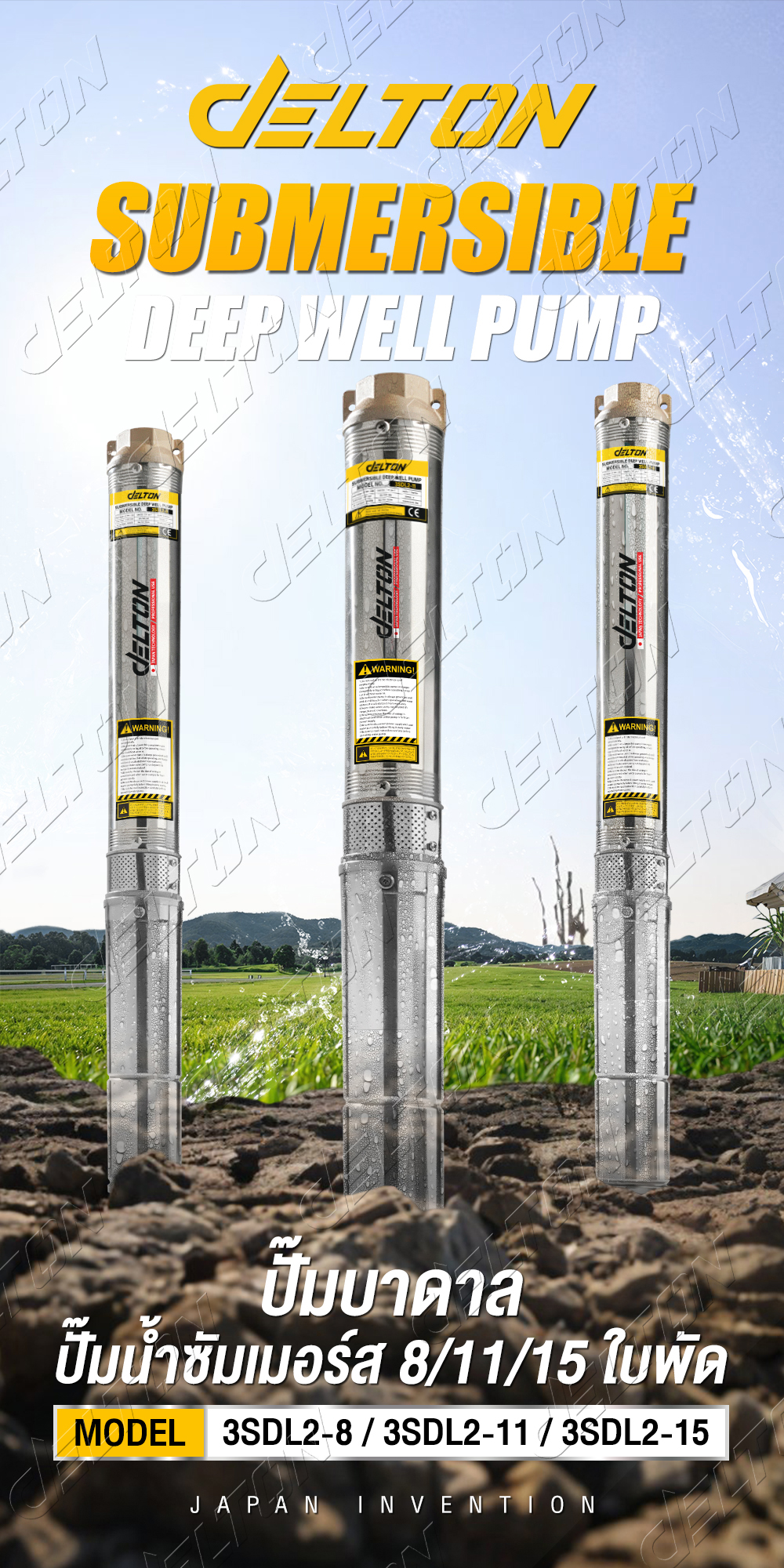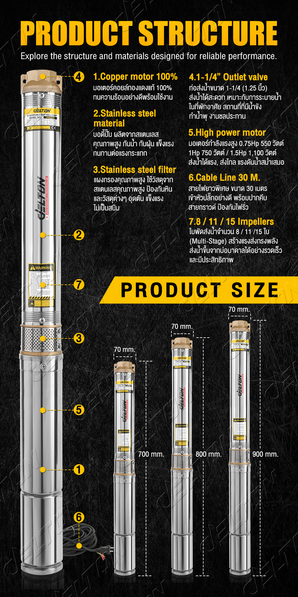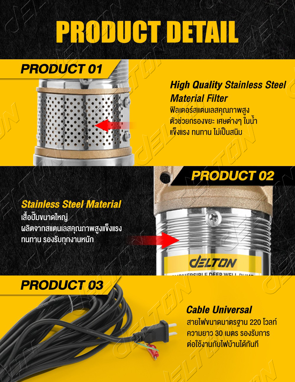DELTON ปั๊มน้ำบาดาล ปั๊มซับเมอร์ส 8 / 11 / 15 ใบพัด