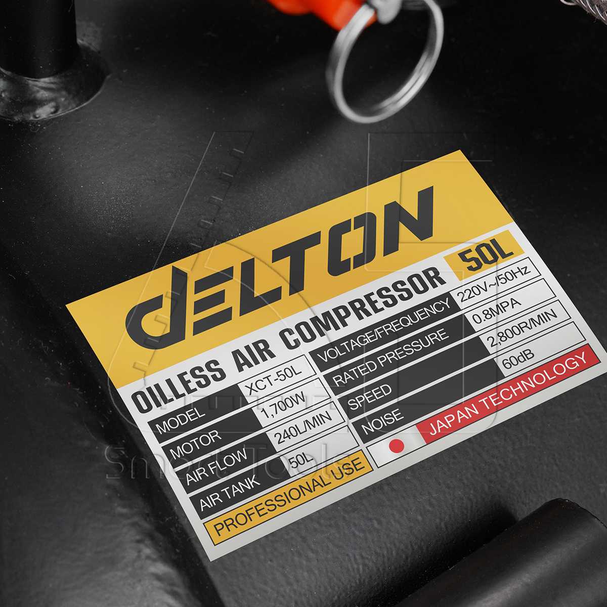 DELTON ปั๊มลมออยล์ฟรี 50 ลิตร 1,700 วัตต์