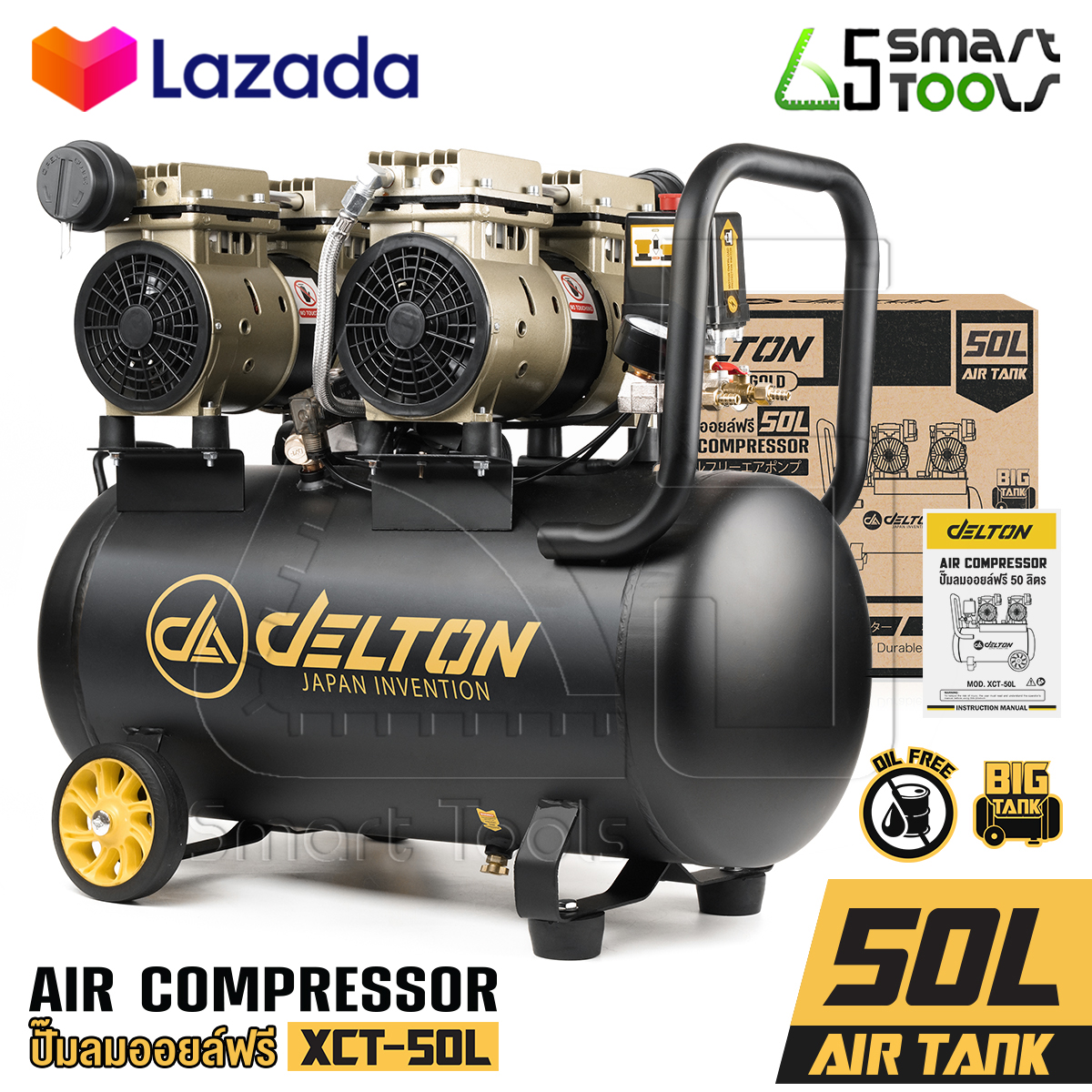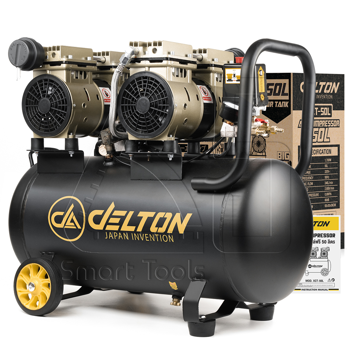 - DELTON ปั๊มลมออยล์ฟรี 50 ลิตร (ถังเต็ม) ปั๊มลมชนิดขับตรง แบบไร้น้ำมัน รุ่นใหม่! XCT-50L