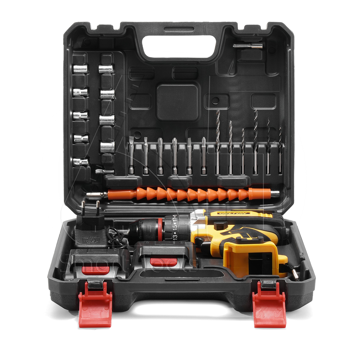 • แถมฟรี! ดอกสว่าน ดอกไขควง ลูกบล็อก สายอ่อน พร้อมกล่องเก็บอุปกรณ์กันกระแทกหนาพิเศษ เก็บอุปกรณ์ลงล็อคทุกชิ้นส่วน เรียบร้อย พกพาสะดวก