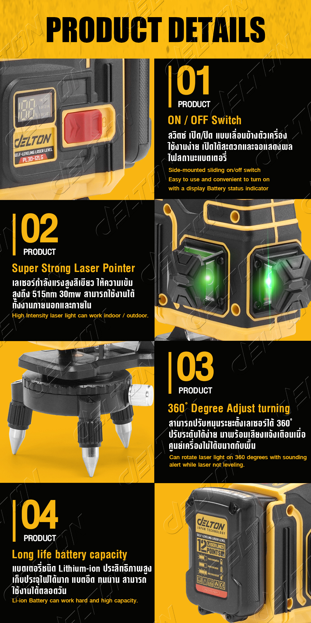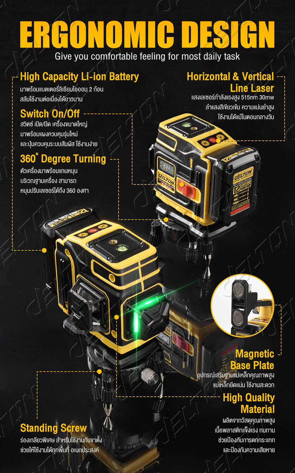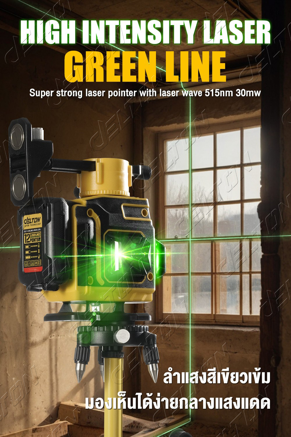 DELTON เครื่องวัดระดับเลเซอร์ เลเซอร์ 3 มิติ 12 เส้น 360 องศา