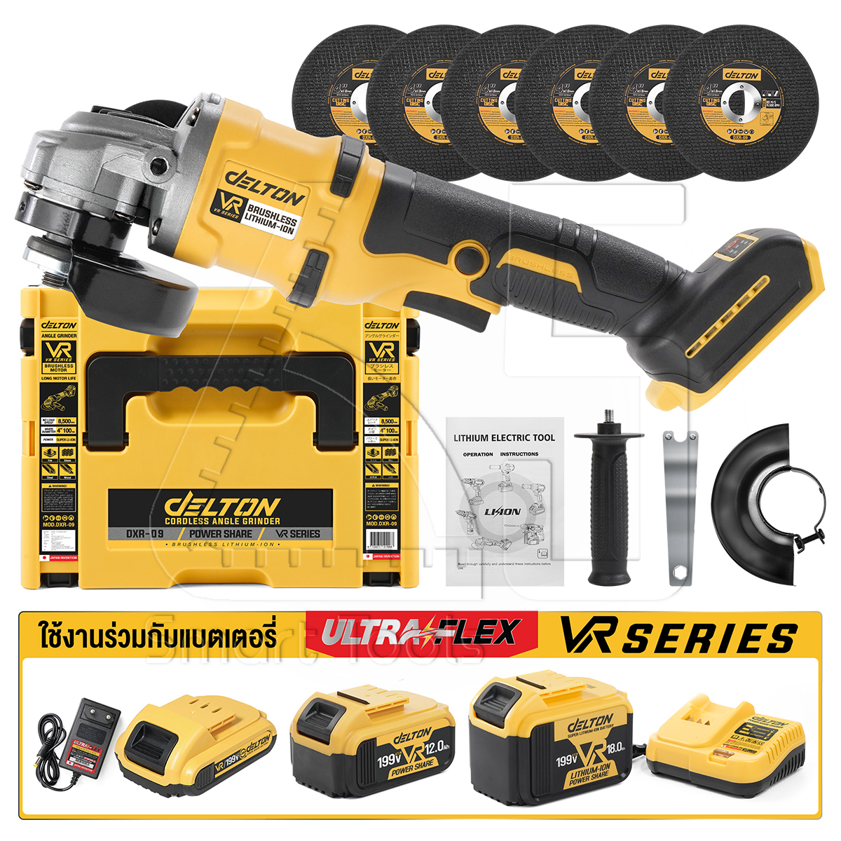 1 x DELTON เครื่องเจียร์ไร้สาย 4 นิ้ว 199V เครื่องเจียร VR Series รุ่น DXR-09