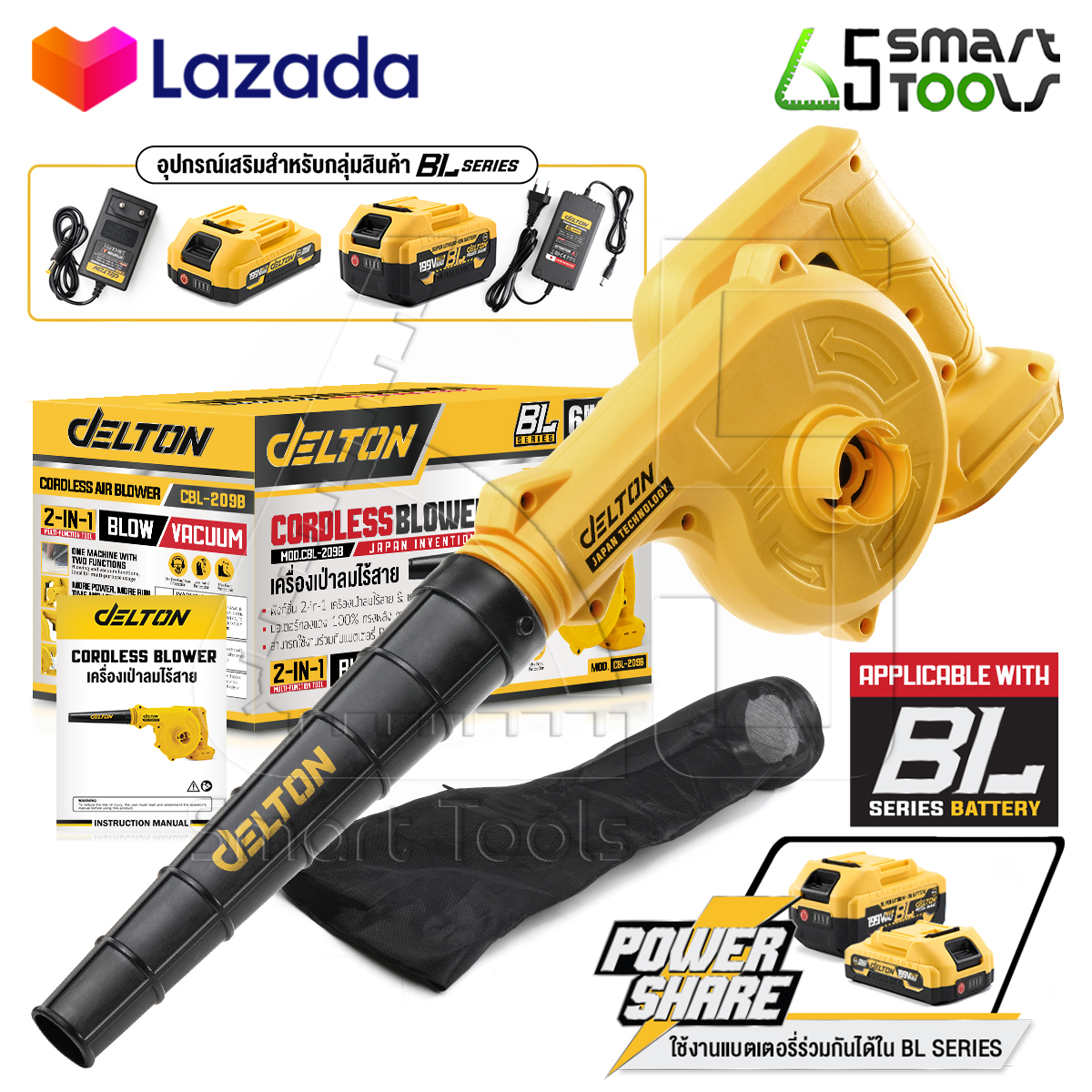 • DELTON เครื่องเป่าลมไร้สาย ดูดฝุ่น ล้างแอร์ รุ่น CBL-209B