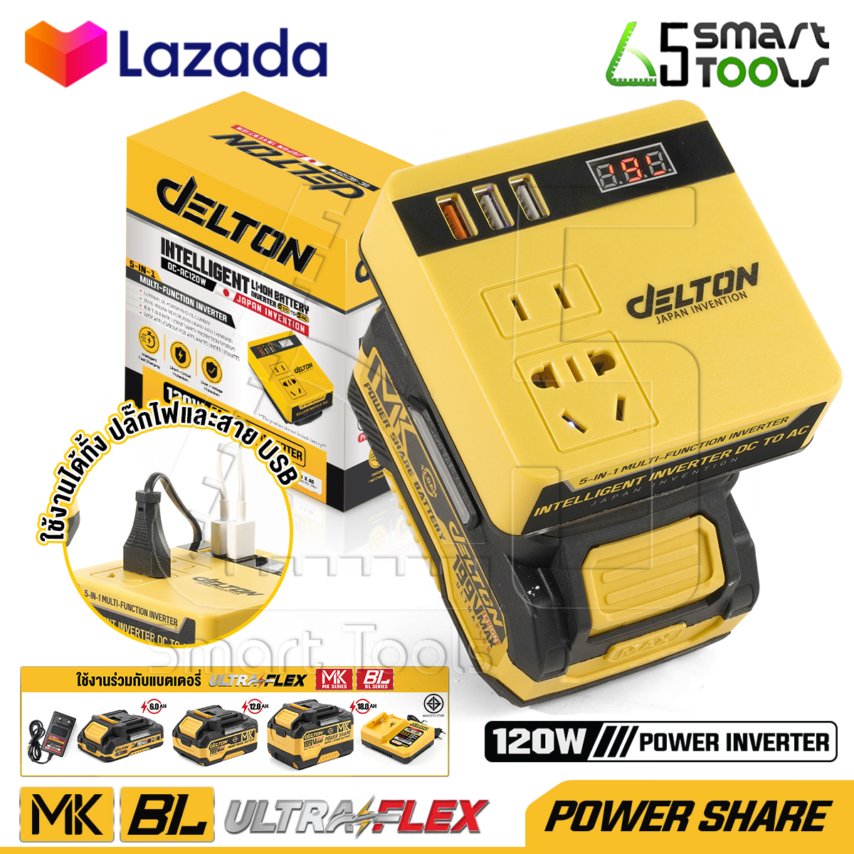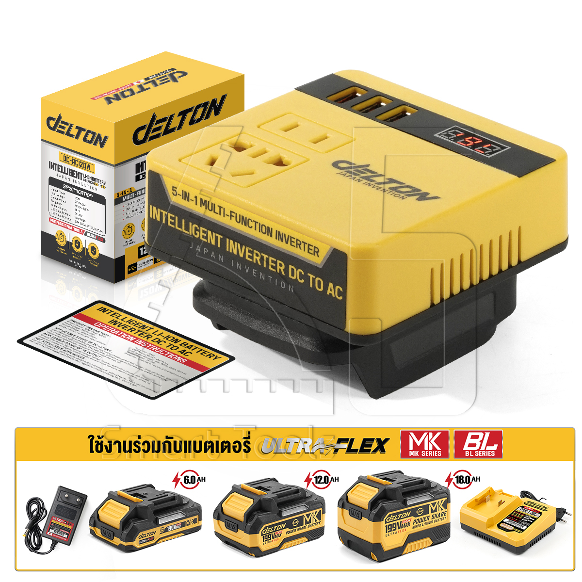 เครื่องแปลงไฟไร้สาย ตัวแปลงไฟฟ้า 120W เครื่องแปลงไฟแบตเตอรี่ DC to AC Li-ion Battery Inverter อินเวอร์เตอร์แปลงไฟ แบตเตอรี่ MK SERIES รุ่น DC-AC120W ใช้งานร่วมกับ DELTON UltraFlex กลุ่ม MK-Series