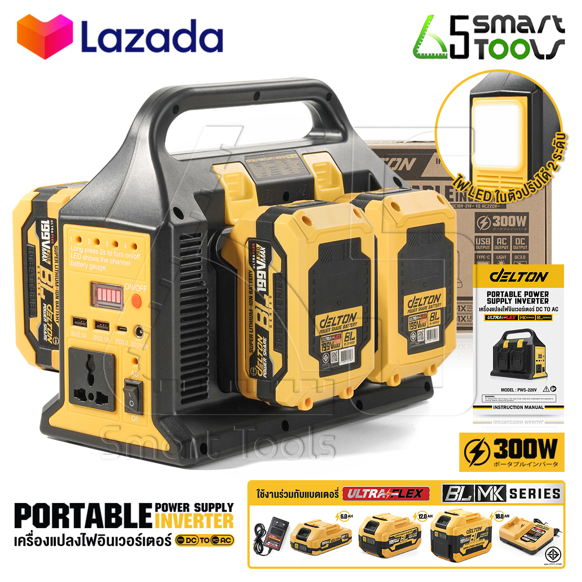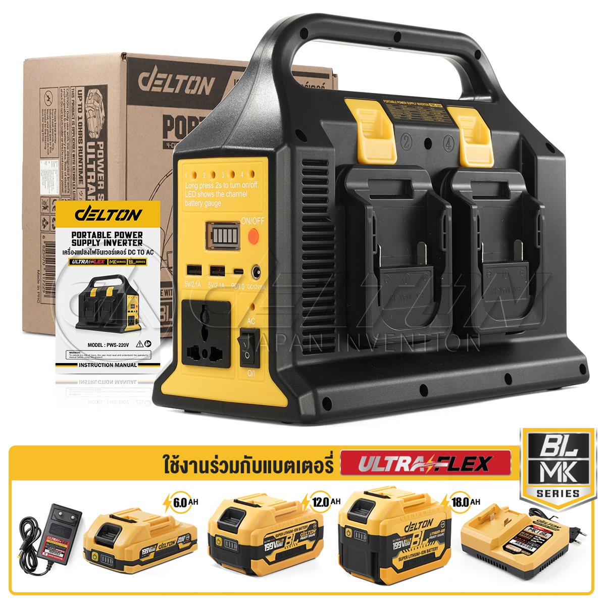 เครื่องแปลงไฟพกพา 300W เครื่องแปลงไฟแบตเตอรี่ 4 Channel Li-ion Battery Inverter อินเวอร์เตอร์แปลงไฟ แบตเตอรี่ 4 ช่อง BL SERIES รุ่น PWS-220V ใช้งานร่วมกับ DELTON UltraFlex กลุ่ม BL-Series