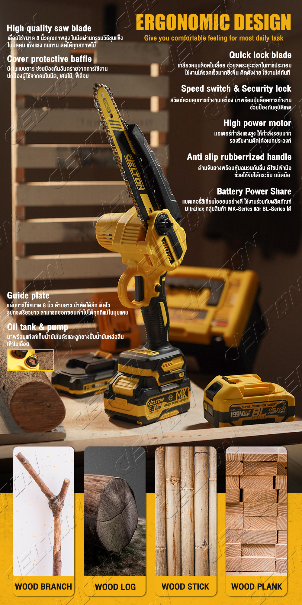 DELTON เลื่อยไฟฟ้าไร้สาย เลื่อยไฟฟ้า เลื่อยโซ่ 8 นิ้ว 20V