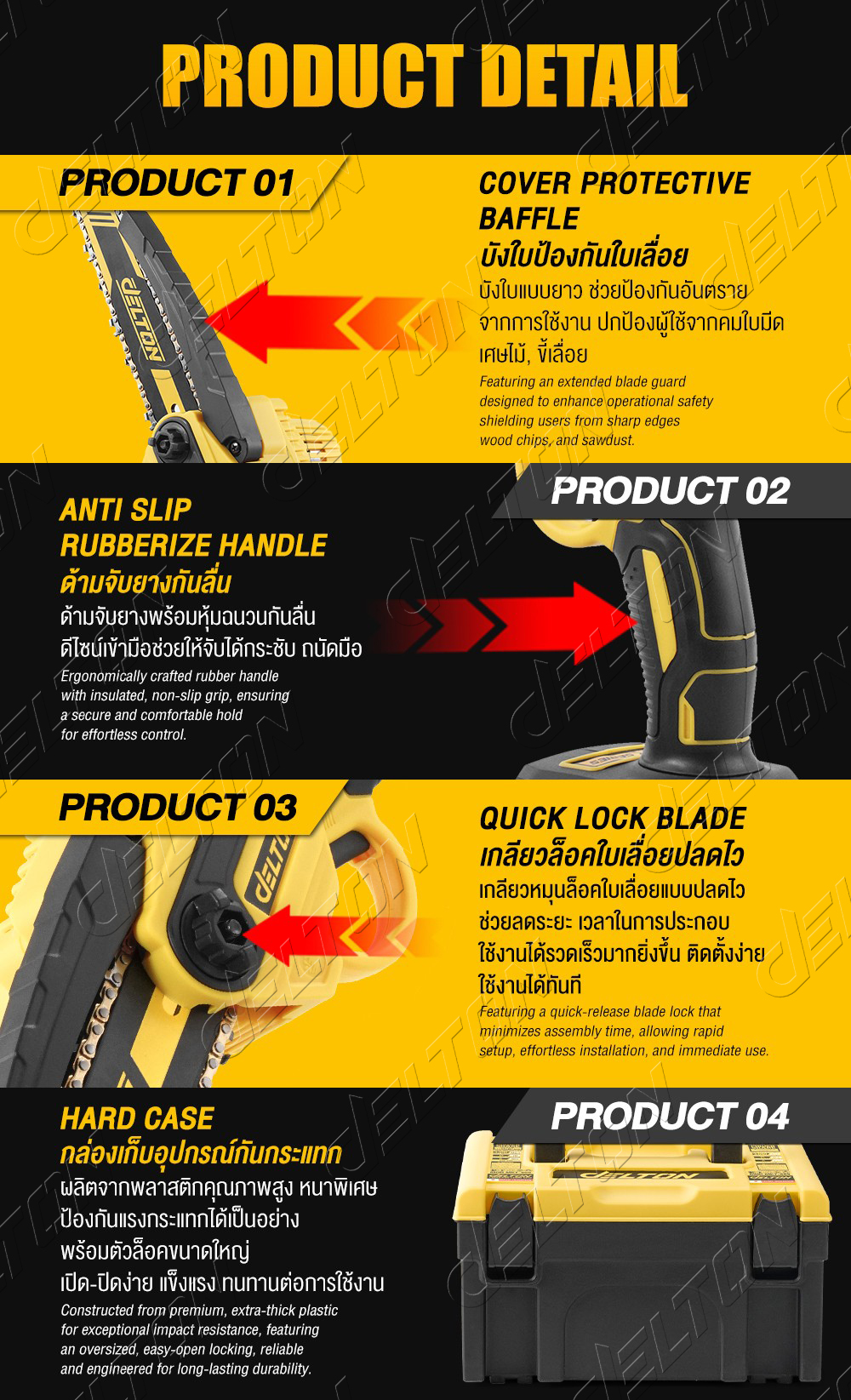 • DELTON เลื่อยโซ่ไร้สาย เครื่องตัดไม้ไร้สาย สำหรับงานตัดไม้ 20V MK Series รุ่น MKT-677