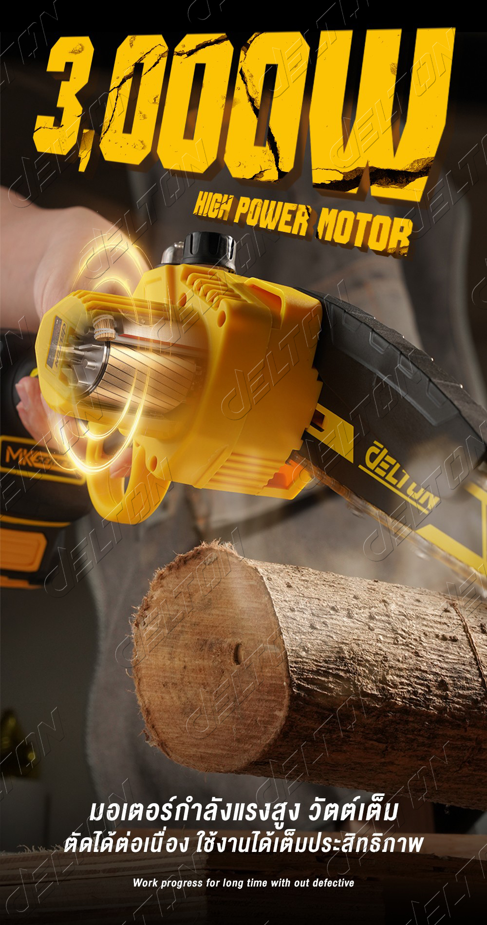 • มอเตอร์กำลังแรงสูง ตัดไม้ได้เต็มกำลัง แรงไม่ตก ตัดลื่นไม่มีสะดุด