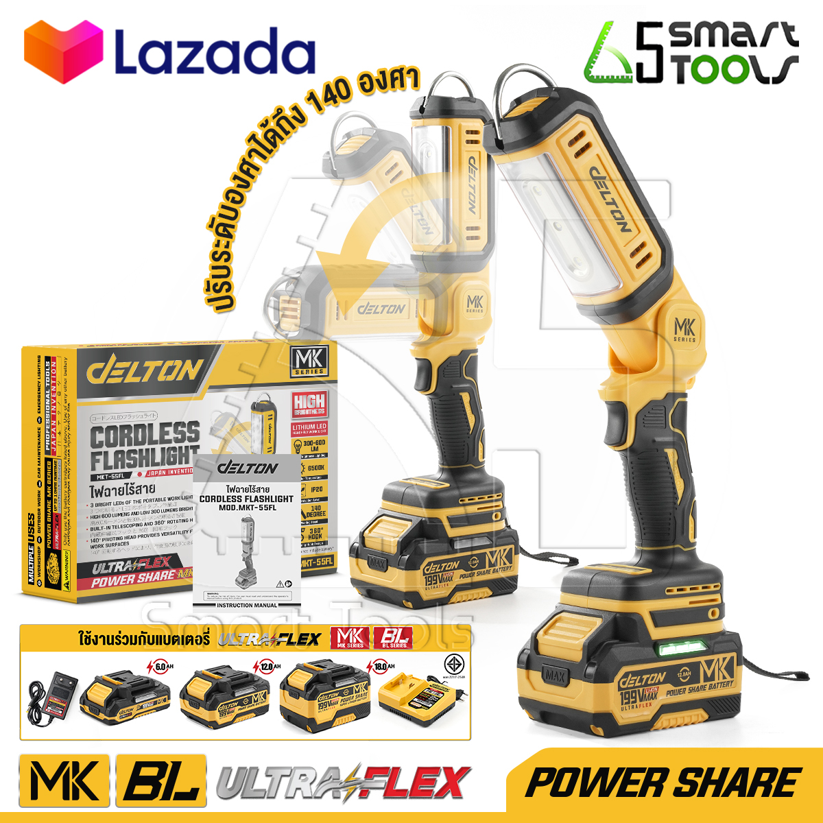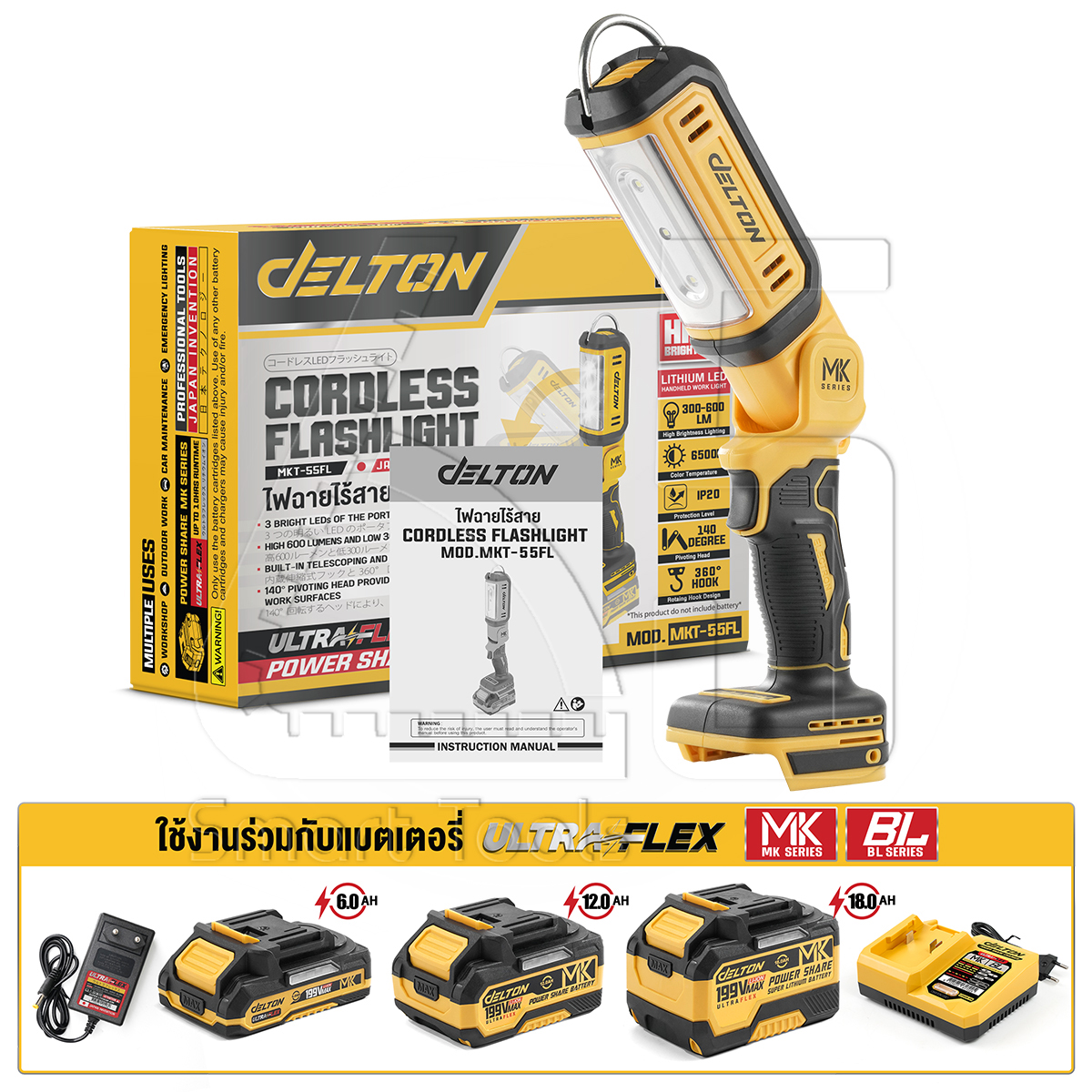 สปอตไลท์ Cordless Flashlight ไฟ LED แบบพกพา ไฟฉุกเฉิน โคมไฟ MK SERIES รุ่น MKT-55FL ไฟช่าง ไฟแบต ไฟแคมป์ ใช้งานร่วมกับ DELTON UltraFlex แบตเตอรี่ Power Share กลุ่ม MK-Series