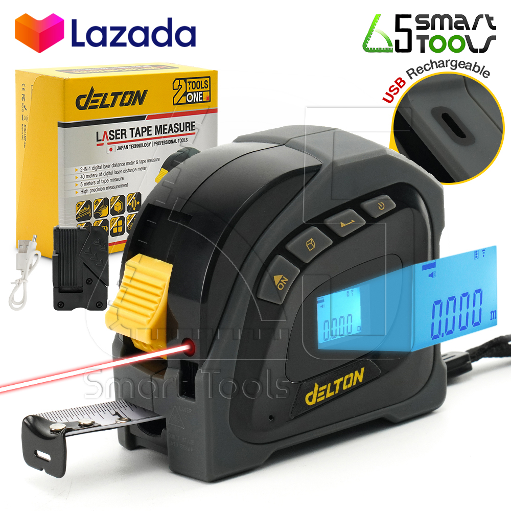 DELTON 2-IN-1 ตลับเมตรเลเซอร์ ตลับเมตรเลเซอร์ดิจิตอล ตลับเมตร 5 เมตร / เลเซอร์วัดระยะ 40 เมตร เลเซอร์ แสงสีแดง พร้อมจอแสดงผลดิจิตอล LCD + USB Charger ใช้ง่าย วัดได้อย่างแม่นยำ Tape Measure & Laser Measure รุ่น LMP-540