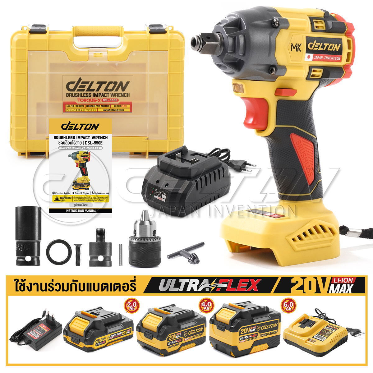 1 x DELTON บล็อกแบตเตอรี่ บล็อกกระแทกไร้สาย 20V TORQUE-X รุ่น DSL-550E