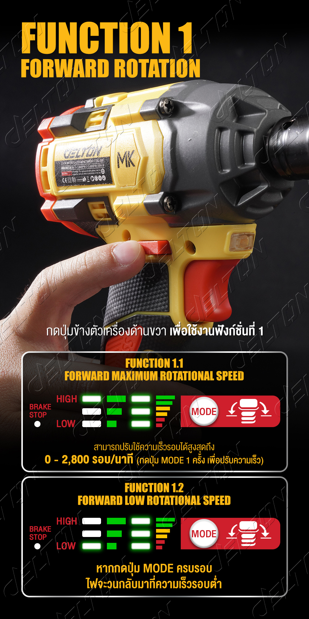 • ปรับสปีดได้ 3 ระดับ 0-2,800 รอบต่อนาที และปรับรอบหมุน ซ้าย-ขวา ได้