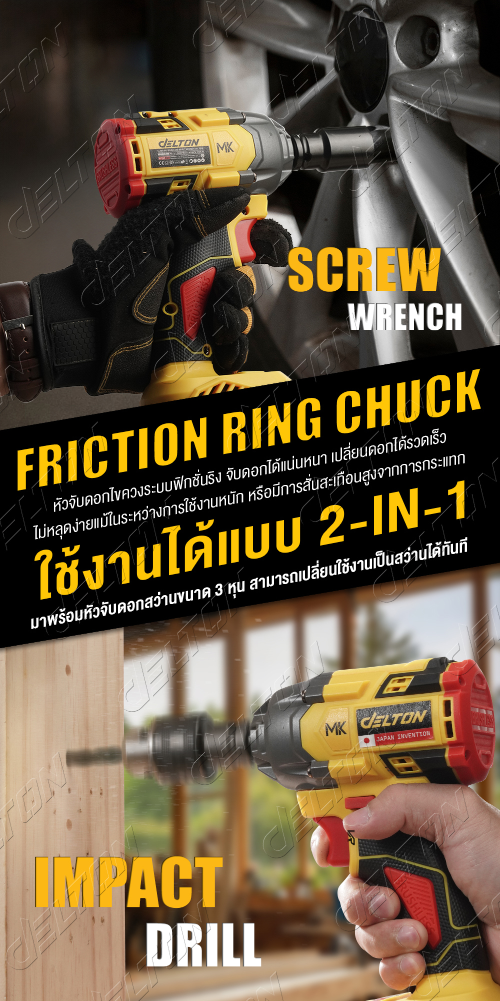 DELTON 2in1 บล็อกแบตเตอรี่ บล็อกกระแทกไร้สาย 199V