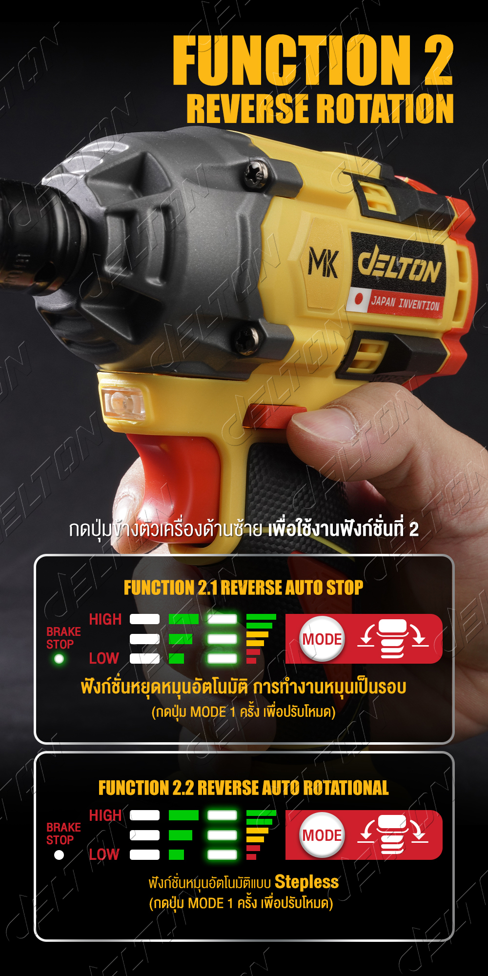 • โหมดขันออก มีระบบ Auto Stop กันน็อตหรือสกรูตก โดยจะทำการขันและหยุดเอง