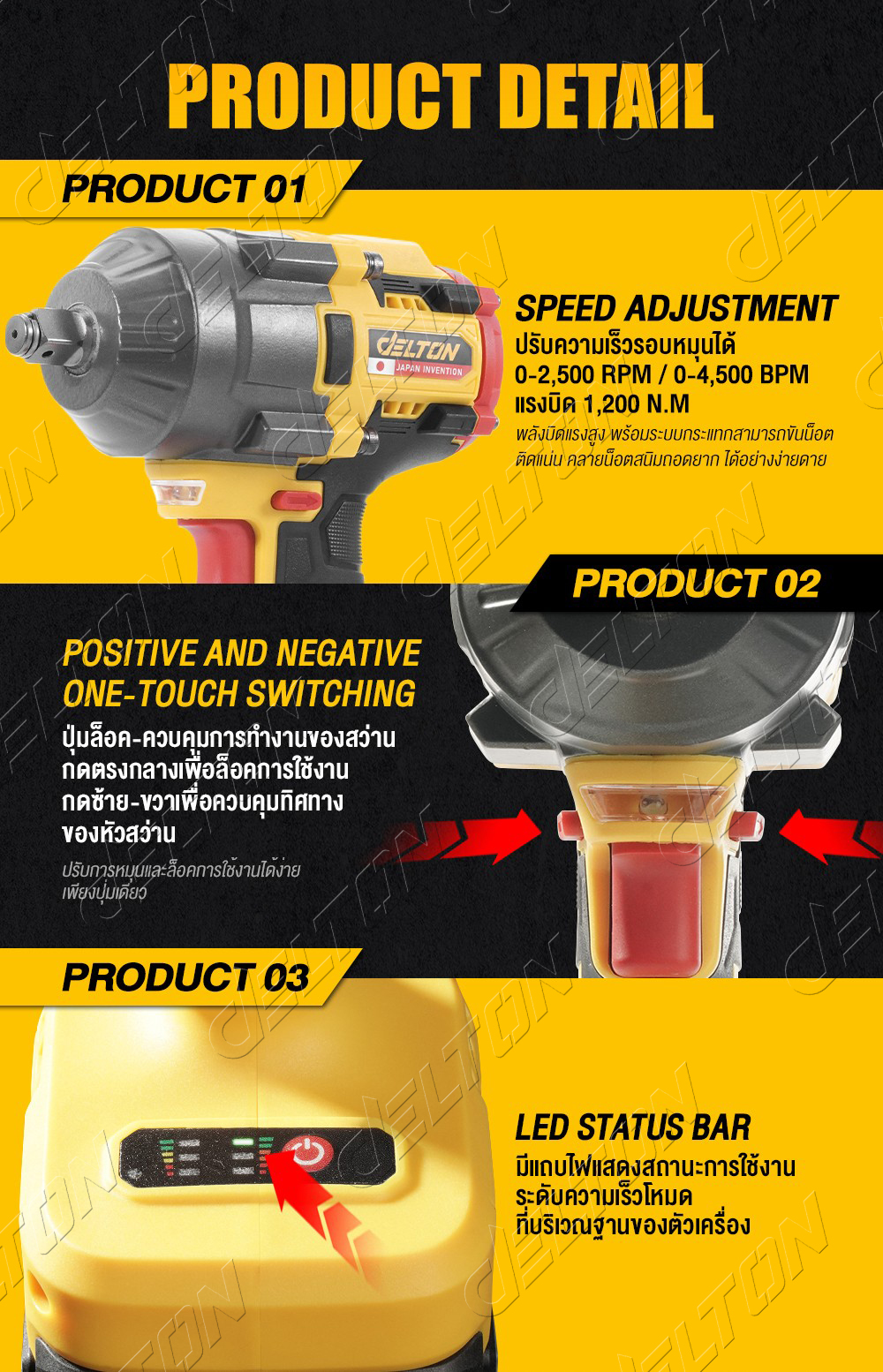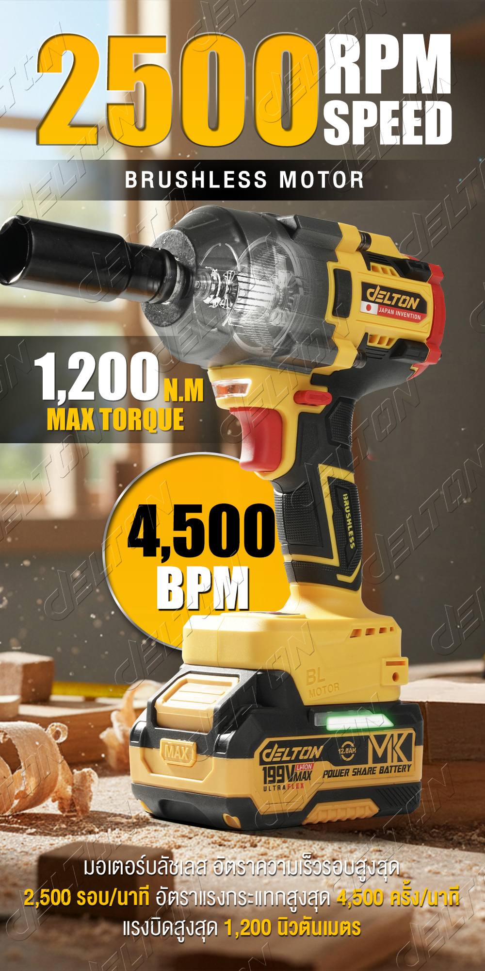 • DELTON บล็อกแบตเตอรี่ บล็อกกระแทกไร้สาย 199V TORQUE-X รุ่น DSL-1200X