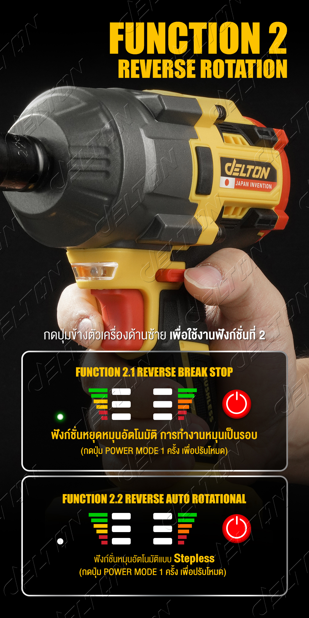 • โหมดขันออก มีระบบ Auto Stop กันน็อตหรือสกรูตก โดยจะทำการขันและหยุดเอง
