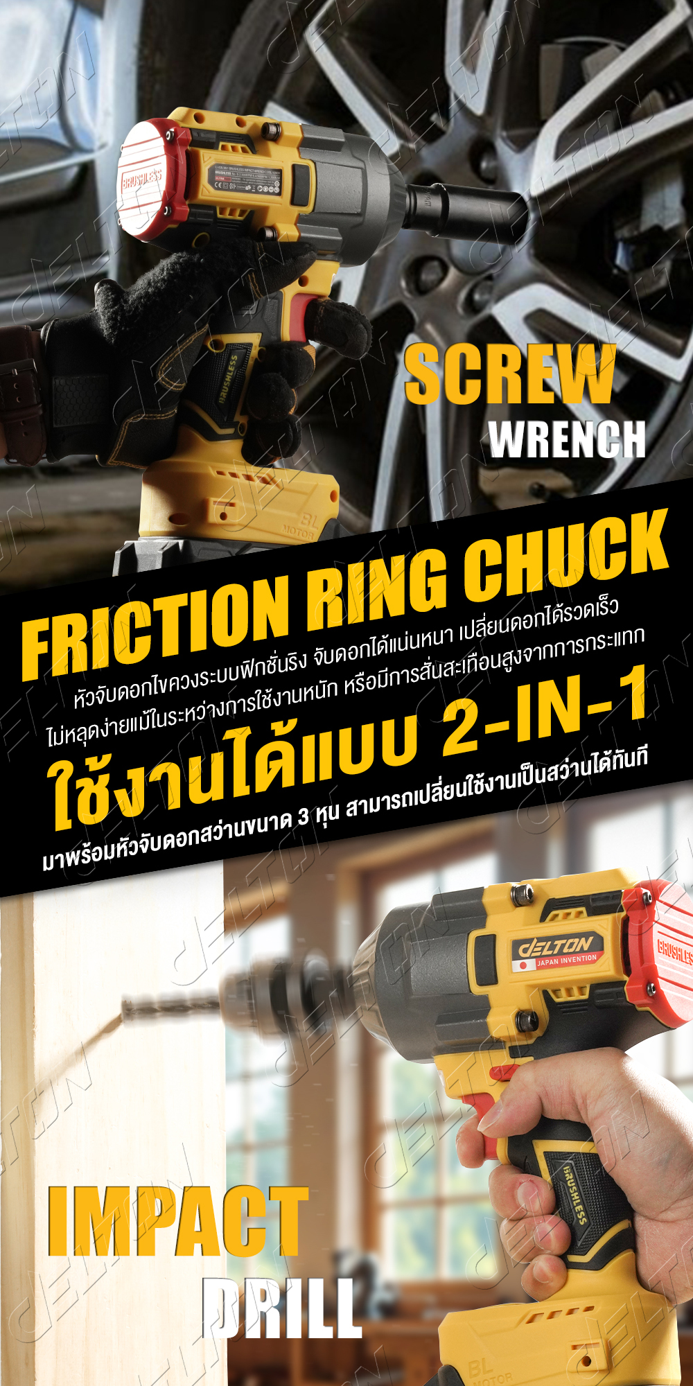 DELTON 2in1 บล็อกแบตเตอรี่ บล็อกกระแทกไร้สาย 199V