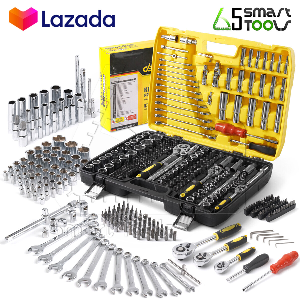 - อุปกรณ์ครบชุดในกล่องเดียวทั้ง ชุดประแจ, ชุดลูกบล็อก, ดอกไขควง ฯลฯ รวม 216 ชิ้น สามารถใช้งานได้ทันที