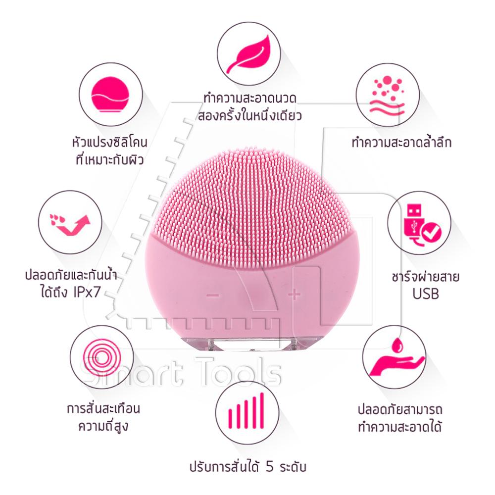 - ทำความสะอาดล้ำลึกด้วยซิลิโคนที่นุ่มนวลและอ่อนโยนต่อผิวหน้า