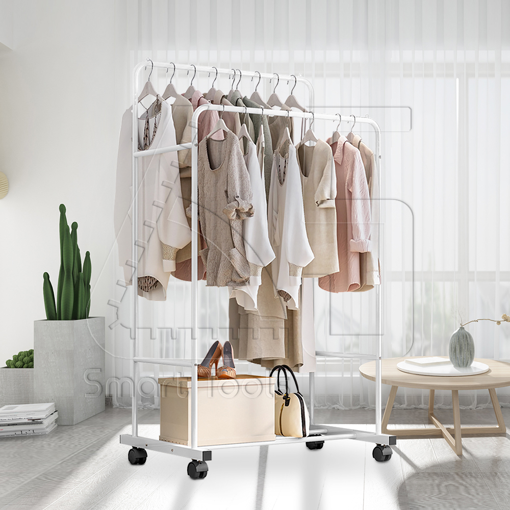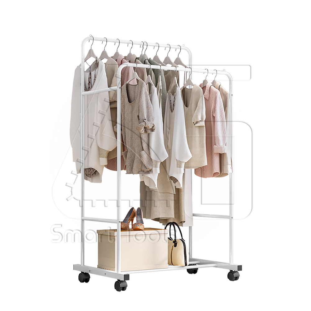 InnHome ราวตากผ้า ราวแขวนผ้า 3in1 บาร์คู่ 2 ระดับ ราวตากผ้าเหล็กอเนกประสงค์ รับน้ำหนักได้มาก 100Kg ขนาด 157x50x80cm ราวตากผ้ามีล้อ รุ่น 088Y