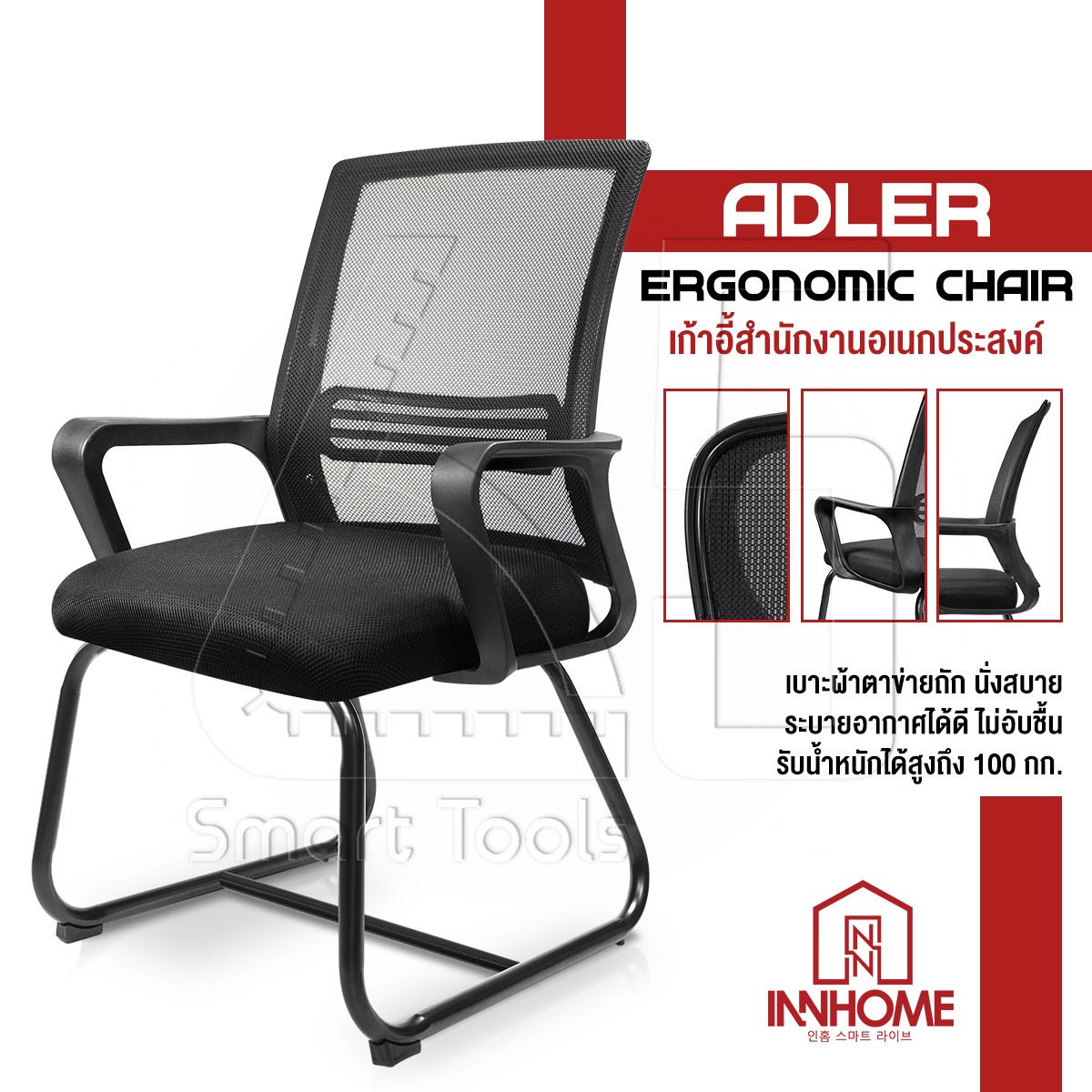 InnHome เก้าอี้สำนักงาน Ergonomic Chair รุ่น ADLER มี Lumbar รองรับสรีระ เบาะผ้าตาข่ายแข็งแรง