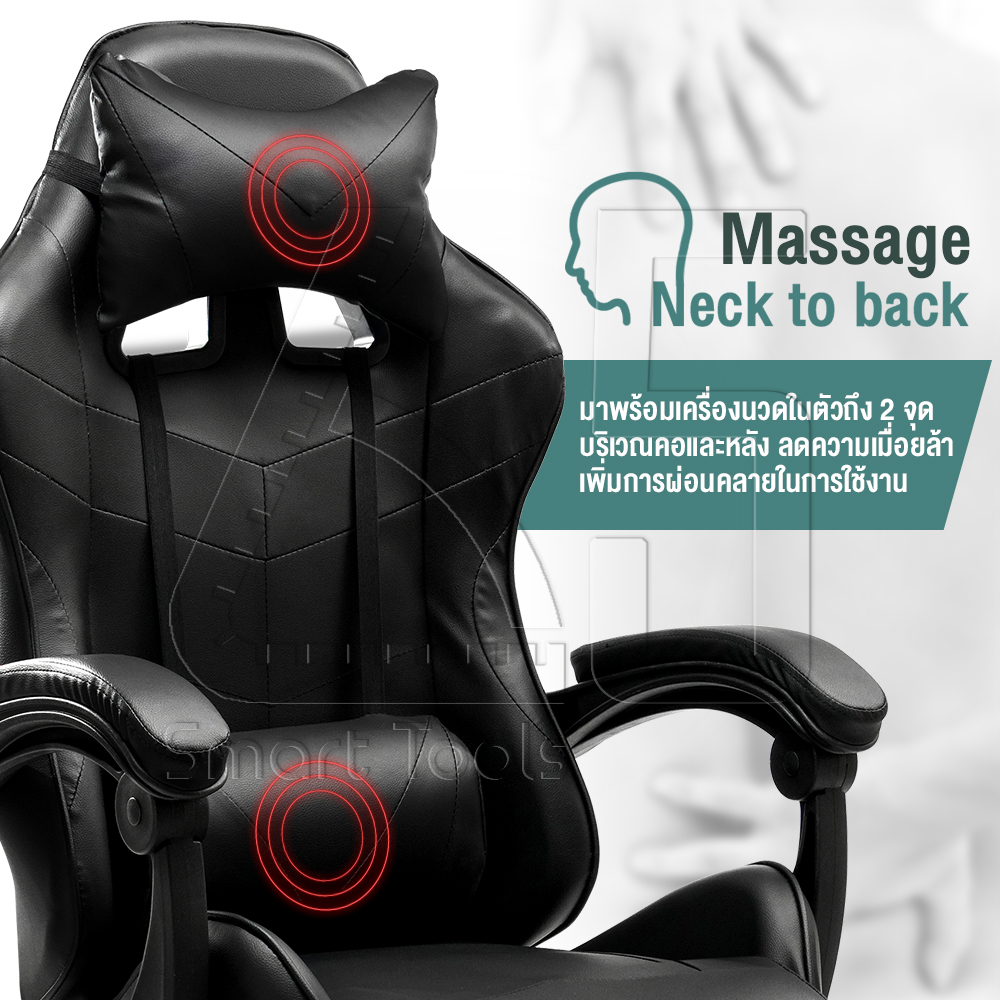 - มาพร้อมระบบนวดบริเวณหลังและต้นคอ (Massage Auto) ถึง 2 จุด ช่วยเพิ่มความผ่อนคลายขณะนั่งทำงาน ลดอาการปวดเมื่อย